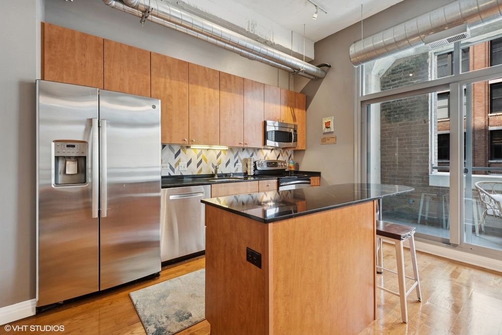 Chic and cozy 2 bed | 2 bath concrete loft, ideally located in the heart of West Loop Gate! Enter directly into an open living/kitchen area boasting a unique designer chandelier, granite counter-tops, an island/breakfast bar, all SS appliances, a private balcony, and floor-to-ceiling windows that flood the home with natural sunlight. Follow the hall to the lofted primary bedroom offering plenty of space for a king-sized bed, incredible closet storage, an electric washer/dryer combo, and an en-suite bath complete with soaking tub, separate shower, a double sink vanity, and a new Toto toilet seat/bidet. The lofted second bedroom is perfect for an in-home office or guest bedroom with a shared closet and full bath in the hall. Recent updates include new fridge 2022, dishwasher 2019, washer/dryer 2019, new carpeting & paint throughout, light fixture in primary bed, and Webpass google fiber internet installed. This home includes a smart thermostat, a very large bonus storage room (10x10) on the same floor as the unit, and a storage locker. Garage parking space #134 is included in the list price. Building amenities include 24/7 doorman, Amazon package lockers, Tide laundry lockers, maintenance, on-site management, gym, party room, bike room, storage lockers, service elevator, roof deck with grills/kitchen, indoor kitchen/bar, theater, pool tables, ping pong, foosball, darts, and bowling lanes!! Perfectly situated at the junction point of multiple neighborhoods: the Chicago's Loop financial district, West Loop/Restaurant Row, and Fulton Market, with easy access to River North, Lake Michigan, and Little Italy/UIC's campus! Located a stone's throw to CTA/public transit, Lake Shore path/drive, I-290/90/94, Union Station, and all that the downtown restaurant and shopping scene has to offer!