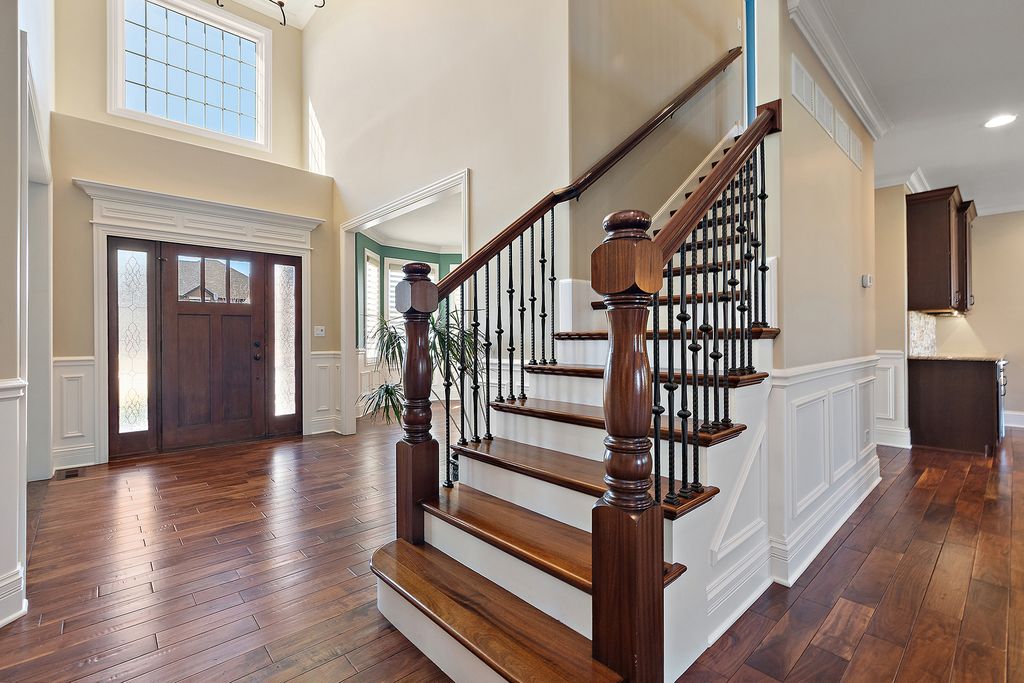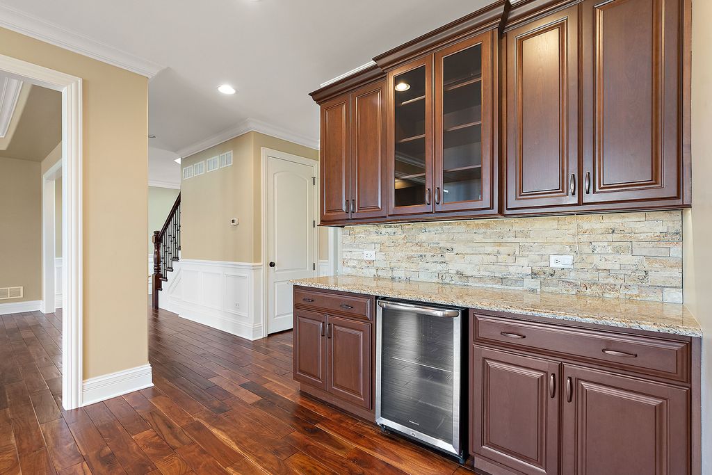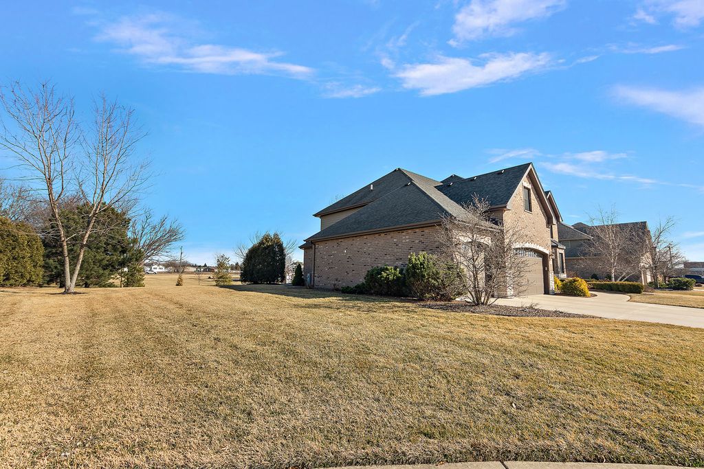 Gorgeous brick two-story home offering exceptional space, craftsmanship, and amenities throughout. The large kitchen features custom maple cabinetry, granite countertops, a gorgeous backsplash, a walk-in pantry, and a butler's pantry complete with a beverage cooler-perfect for entertaining. The spacious laundry room includes a closet, a custom coat bench, a sink, and ample cabinetry. Adjacent to the kitchen, the family room showcases a fireplace, tray ceiling, and elegant crown molding. The main-level office is enhanced with wainscoting and crown molding, while the living and dining rooms provide wonderful entertaining spaces. Upstairs, you'll find a rare and highly desirable bonus room. The primary suite features a dual vanity, a large walk-in shower, a whirlpool tub, and an impressive walk-in closet. All three additional bedrooms feature ceiling fans and walk-in closets, including one princess suite and two connected by a Jack-and-Jill bath. The professionally finished basement boasts two separate entertaining areas, additional cabinetry with a microwave, sink, and beverage refrigerator. French doors lead to a private room that was previously used as a workout space, along with a stunning bathroom with an infrared sauna. Outdoors, enjoy the beautifully landscaped backyard with a brick-paver patio and firepit-ideal for relaxing or hosting guests. Additional highlights include a 30-year roof and the front replaced in 2020, Andersen windows, hardwood flooring, beautiful millwork, wired for surround sound in the basement, a family and bonus room, a battery backup, and custom finishes throughout.
