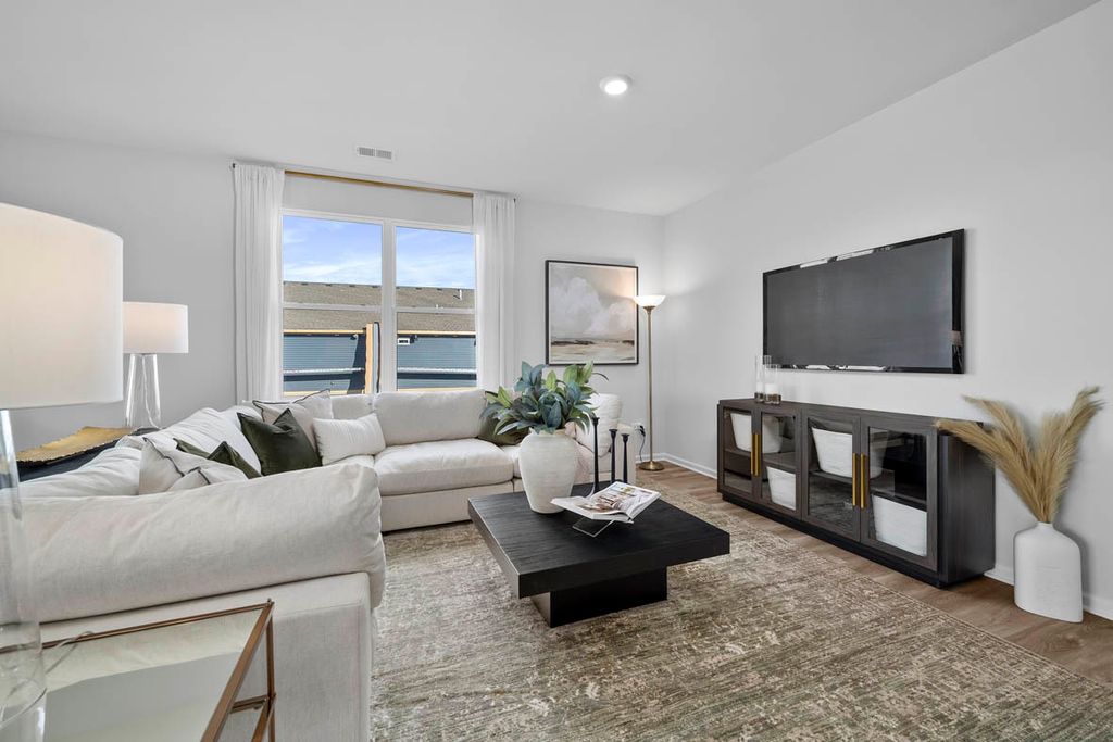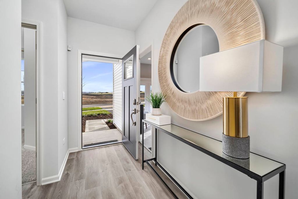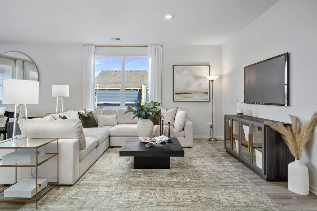 MODEL HOME FOR SALE!!! Envision yourself at 1390 Wild Tulip Circle in Bartlett, Illinois, a beautiful new home in The Grasslands community. This ranch home is move-in Ready NOW! Scenic homesite backs to an open ground and includes a fully sodded yard and covered back patio. This Clifton model home is a must see!!! It offers 1,863 square feet of living space with a flex room, 2 bedrooms, 2 baths, and 9-foot ceilings, plus 2-car garage with epoxy finish flooring. When you first enter the home, there is a secondary bedroom, full bath, and a flex room. Down the hall, you will walk into the open concept great room and kitchen. The kitchen layout includes a large island with an overhang for stools, 42-inch designer flagstone cabinetry with crown molding and soft close drawers. Additionally, modern stainless-steel appliances including washer and dryer, quartz countertops, easy-to-maintain luxury vinyl plank flooring, and most window treatment. Enjoy your private get away with your spacious primary bedroom and en suite bathroom with a raised height dual sink, quartz top vanity, and walk-in seated shower with ceramic tile walls, and clear class shower doors. All D.R. Horton Chicago homes include our America's Smart-Home Technology, featuring a smart video doorbell, smart Honeywell thermostat, Amazon Echo Pop, smart door lock, Deako smart light switches and more. Images are of actual home. Furnishing displayed in photos are not included in the purchase of the home.