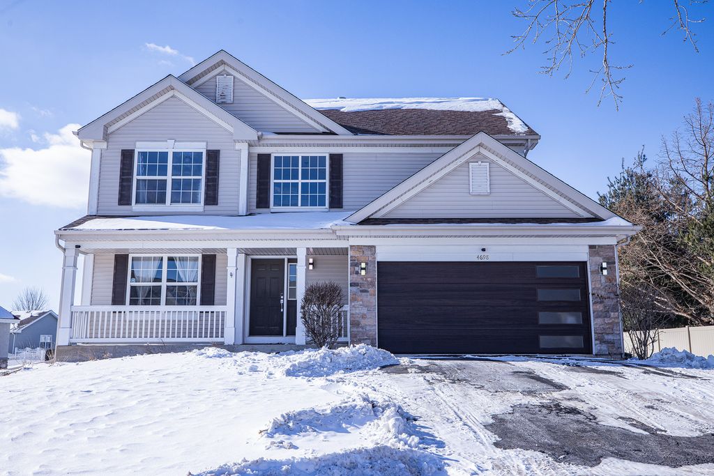 This charming two-story home offers the perfect blend of space and functionality for growing families. With four bedrooms and two and a half bathrooms, there's room for everyone to spread out and feel at home. The main level welcomes you with a cozy family room featuring a fireplace that invites you to curl up on cold evenings. The eat-in kitchen makes weeknight dinners a breeze, while the formal dining room stands ready to host your most memorable meals. Upstairs, the primary bedroom boasts a private bath and walk-in closet, with the added convenience of second-floor laundry. The partially finished basement provides a recreation room ideal for movie nights or entertaining guests. Outside, the deck offers a wonderful spot for relaxing or grilling. Notable updates include a brand-new garage door, radon system, and a new roof coming this spring with your choice of shingles. Conveniently located near shopping, dining, and Interstate 90 access.