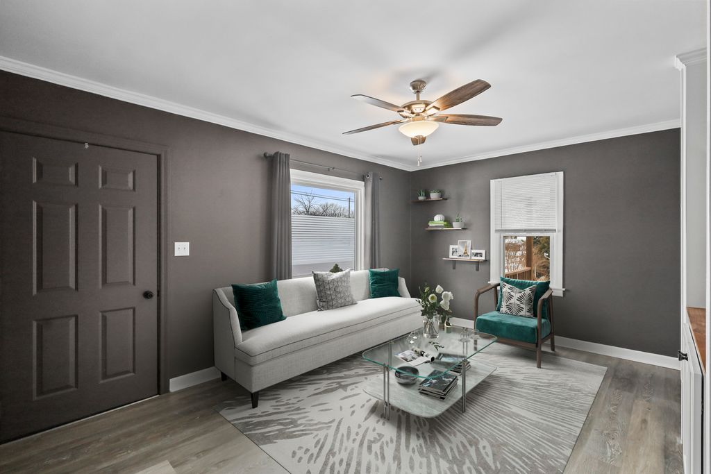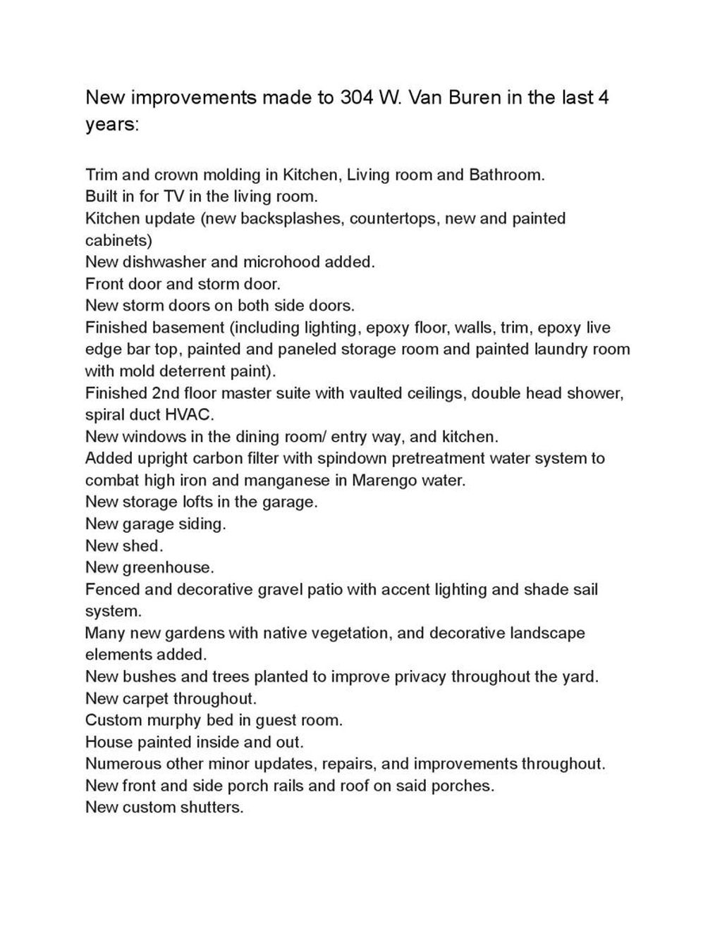 Extensively Updated Cape Cod with Finished Basement, Outdoor Oasis & Solar Energy Savings! This beautifully improved 1.5-story Cape Cod in Marengo offers the perfect blend of timeless charm and major modern upgrades - with significant improvements completed within the last 4 years. Step inside to find updated trim and crown molding, a custom built-in TV feature in the living room, fresh interior and exterior paint, and new carpet in the 3 bedrooms. In the 2nd bedroom boasts a custom built in queen size Murphy bed. Very unique! The kitchen has been thoughtfully refreshed with painted cabinetry, updated countertops, stylish backsplash, and newer dishwasher and microwave/hood - all stainless steel, creating a bright and functional heart of the home. The fully finished basement dramatically expands your living space with Rustoleum rock solid metallic epoxy flooring, upgraded lighting, detailed trim work, and a striking live-edge epoxy bar top - ideal for entertaining. The storage room and laundry area have also been finished and painted with a mold-resistant paint for a clean, polished look. Upstairs, the private primary suite retreat features vaulted ceilings and a spa-inspired shower with a double-head shower and spiral duct HVAC for modern comfort. Outdoor living is equally impressive. Enjoy a fenced decorative gravel patio complete with accent lighting and shade sail system, plus a greenhouse, new shed, added garage storage lofts, updated garage with vinyl siding, new porch railings and porch roofs, custom shutters, and extensive landscaping including native gardens and added privacy trees. Additional recent upgrades include newer windows in key living areas, new front and back storm doors, and a whole-home upright carbon filtration system with spin down pretreatment designed to address local water conditions. Energy-conscious buyers will appreciate the leased solar panel system, which transfers to the new owner and helps reduce monthly electric costs. This home reflects true pride of ownership with thoughtful improvements inside and out - offering move-in-ready condition, flexible living space, and long-term value.