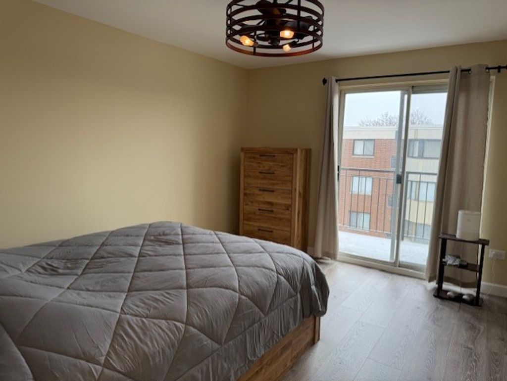 Gorgeous remodeled one bedroom available. One of a kind unit that has the actual balcony 4 1/2 X 25 ft belongs to the unit. Check out the beautiful kitchen with stainless steel appliances, new cabinets and quartz countertop; has a pantry and it overlooks the dining room. All new flooring. All new light fixtures throughout the unit. Open bright living room with hardwood floors. Furniture is negotiable if you are interested. It is only a few months old. Unit offers an abundance of closets at the entry, the linen closet, master bedroom has wall to wall closet. New AC in bedroom. Master bedroom overlooks one half of the outside balcony. Stroll into your beautiful bathroom all white with black vein stone with new plumbing and fixtures throughout. Turnkey unit is beautiful. Laundry and bicycle storage is in the building. Unit comes with one inside and one outside parking space. The pool is super fun. It's the best place to hang out in the summertime. Location is very convenient near shopping, parks, restaurant and the express way.