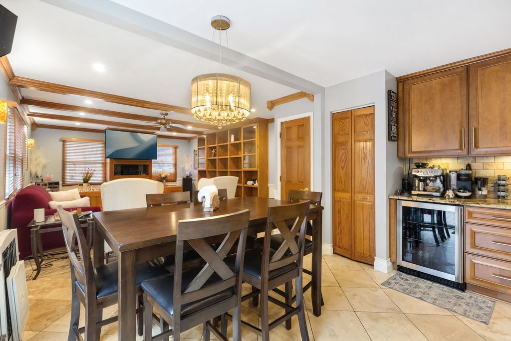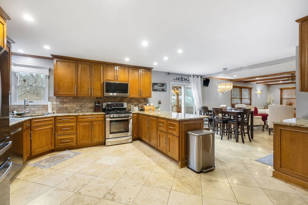 Custom Heritage model with two family rooms both with fireplaces (use one as an office), dining room, living room, Large custom kitchen with 42 inch cabinets that are soft close and have roll out shelves, Stainless Steel Appliances, granite counters, travertine backsplash, wine refrigerator, two closet pantries, travertine floors. Kitchen open to family room with wood beams, built in bookcase and a built-in fireplace with storage cabinets. Upstairs, are four generous bedrooms with hardwood floors and ceiling fans. Master bath has tub with jets and a double sink vanity, hall bath upstairs has a skylight, a 1/2 bath on first floor. Finished basement with recreation room, exercise room, full bath, storage. Deck, shed, gazebo, brick landscape wall with lights! Backs to a beautiful private tree lined backyard. Roof and siding were done 8-9 years ago. Home is located in a wonderful neighborhood with sidewalks, a nearby park with tennis and basketball courts, a skatepark, and a splash pad. Dog park a few blocks away and the scenic Raceway Woods. Close to shopping, restaurants, and downtown West Dundee. Minutes to I-90 and Metro. Home being sold as is.