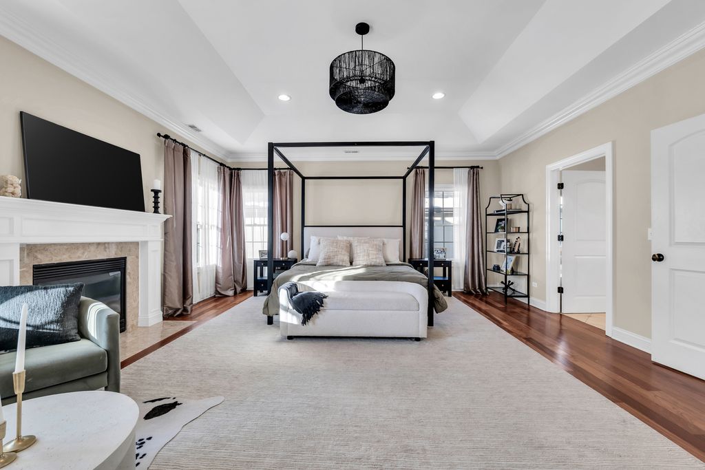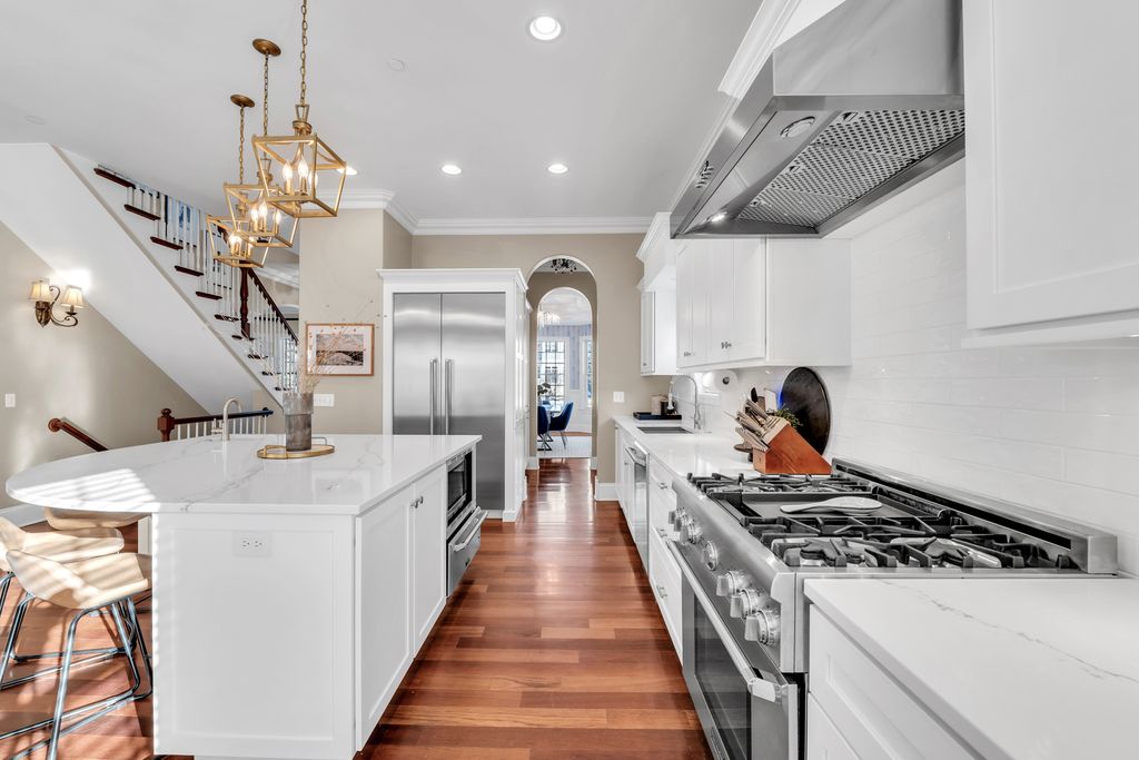 Set on Sunnyside Avenue in the highly sought-after Copeland Elementary neighborhood, this five-bedroom, 3.5-bath home blends 10-foot ceilings on the main level, vaulted bedroom ceilings, and a thoughtfully designed open layout to create a home that lives comfortably and effortlessly. The updated kitchen features white shaker cabinetry, white quartz countertops, high-end Thermador and Bosch appliances, and a large center island that opens directly to the main living space-ideal for both everyday living and entertaining. A dedicated first-floor office provides flexible work or hobby space without sacrificing the home's flow. Upstairs, all bedrooms feature vaulted ceilings, including a spacious primary bedroom with ensuite bath and a newly updated soaking tub. The finished lower level adds meaningful living space and includes a true fifth bedroom, along with a wine cellar, bar, and media area-perfect for guests, extended stays, or multi-purpose use. Outside, the fenced yard is professionally landscaped and anchored by a brick paver patio, pergola, and outdoor fireplace-creating a private, functional extension of the home. A heated three-car garage with gated drive adds convenience and storage. Notable recent improvements include a newer furnaces and air conditioner (2024), tankless water heater (2025), washer and dryer (2025), electric gate opener (2025), and exterior fencing (2025). Walking distance to Copeland Elementary and Riverside Park, with quick access to major roadways for an easy commute.