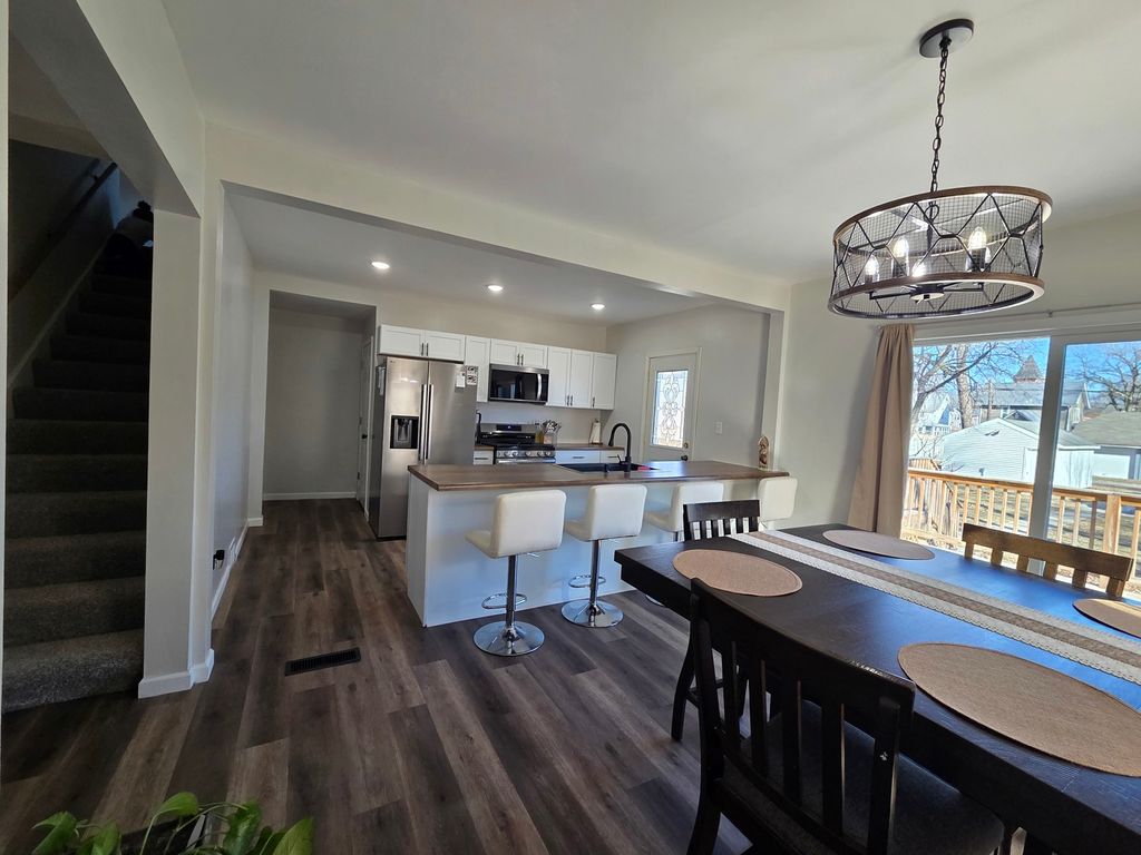 Welcome home to 908 1st Ave in Sterling! A warm, inviting, fully renovated 3-bedroom, 2.5-bath home designed for comfort, convenience, and easy everyday living. Nothing to do but move in! Schedule your private showing today, homes with these features do not last long!! One of the standout features is the first-floor primary bedroom, complete with an attached full bath and a walk-in closet. The home also features two additional bedrooms and 2nd full bath upstairs providing plenty of space for household members, guests, or a home office. The first-floor laundry room and a half bath near kitchen adds everyday convenience. The Living room flows nicely through the kitchen and dining area, where sliding doors lead to a large deck-perfect for outdoor dining, entertaining, or relaxing with your morning coffee. Adding to the functionality is a convenient one-car garage accessed from the alley, offering off-street parking and extra storage. Natural light fills the living spaces, and the layout is both practical and welcoming. Located near shopping, dining, and local amenities, this home offers a great balance of comfort and accessibility. If you are looking for a home with main-level living, outdoor space, and a garage, this home is worth a closer look. 2025 Updates include: Exterior has new roof, vinyl siding, windows, gutters, down spouts. Interior has new kitchen cabinets, counter top, sink, and breakfast bar, appliances. New LVT flooring in kitchen, dining room, bathroom, and main floor laundry areas. New 6 panel interior door, wood trim, slider door, and exterior front and back door. Main floor Master bedroom has walk in closet and remodeled full bath, main floor 1/2 bath and full bath upstairs. Freshly painted interior, carpet, and new light fixtures including ceiling fans with remotes.