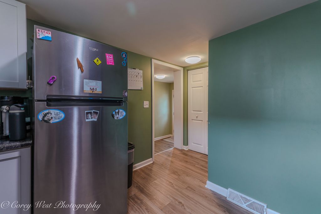 Welcome home to this charming and move-in-ready 3-bedroom ranch set on a generous .55-acre lot, offering the space and flexibility today's buyers are searching for. Step inside to a bright, refreshed interior featuring an updated kitchen with modern cabinetry, countertops, and stainless steel appliances, paired with updated flooring throughout for a clean, cohesive look. The home offers comfortable living with three well-sized bedrooms, ample natural light, and a functional layout that makes everyday living easy. A full basement provides excellent storage, while the 2 1/2-car garage plus 20x18 carport/lean-to adds versatility for vehicles, hobbies, or outdoor equipment. Major updates include a newer roof (2020), giving added peace of mind. The expansive yard offers room to relax, garden, entertain, or simply enjoy the quiet setting-something rarely found at this price point. Whether you're looking to stop renting, downsize, or purchase your first home, this property delivers value, space, and comfort in a small-town setting with room to grow.