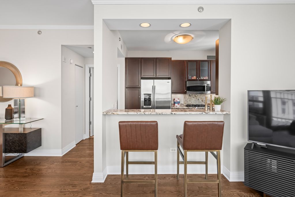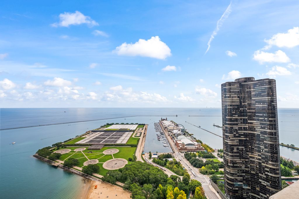 Experience the pinnacle of Chicago lakefront living at 600 Lake Shore Drive, one of Streeterville's most prestigious addresses. This 42nd floor corner residence offers sweeping views of Lake Michigan and the iconic skyline, with the lakefront trail, beach, & Navy Pier just steps away. Inside, the home is beautifully appointed with sophisticated designer finishes, high ceilings, expansive windows, and spectacular balcony. The open concept chef's kitchen features custom cherry cabinetry, granite countertops, and stainless-steel appliances. Refinished hardwood floors, plush bedroom carpeting, upgrade tile baths, and in-unit laundry add both elegance and convenience, while generous closets provide excellent storage. Residents of this premier building enjoy world-class amenities, including a newly renovated fitness center, and a sensational rooftop deck with spectacular lake views. The spacious lobby with attentive 24-hour door staff offer exceptional services. This is a rare opportunity to own a refined lakefront retreat in one of Chicago's most sought-after luxury residences. Home conveniently located close to upscale shops, 5-star restaurants, and vibrant city nightlife. Premium heated garage parking on level 3M sold separately for $50,000. A sensational residence to call home.