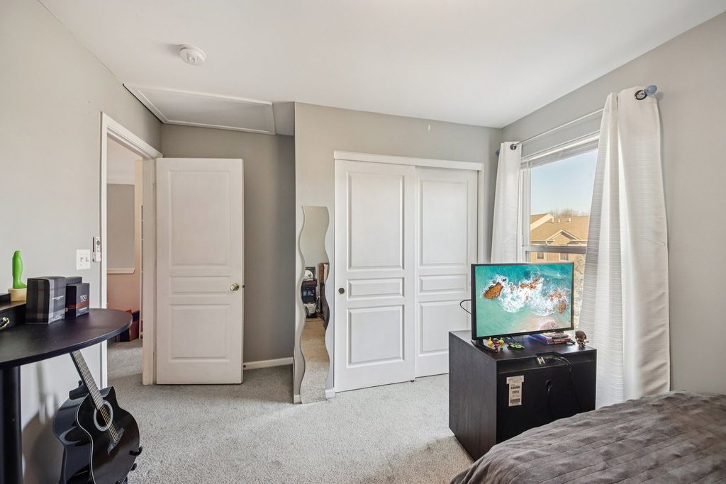 You'll love this bright and spacious townhome in an amazing location! Step inside to soaring ceilings in the living room that create an open, airy feel filled with natural light. Sliding doors lead to an oversized patio, perfect for relaxing, grilling, or entertaining outdoors. The kitchen features stainless steel appliances, ample counter space, and flows seamlessly into the dining area, ideal for everyday meals or hosting guests. Upstairs, a versatile loft space offers the perfect spot for a home office, reading nook, or flex space. The primary suite impresses with vaulted ceilings and a generously sized bath complete with a double-sink vanity. Bedrooms two and three are comfortably sized and share a well-appointed hall bath. The unfinished lower level provides excellent storage now and endless potential for future living space. The attached garage offers space for 2 cars and some storage. All of this in a prime location close to shopping, restaurants, and the neighborhood park. This one checks all the boxes!
