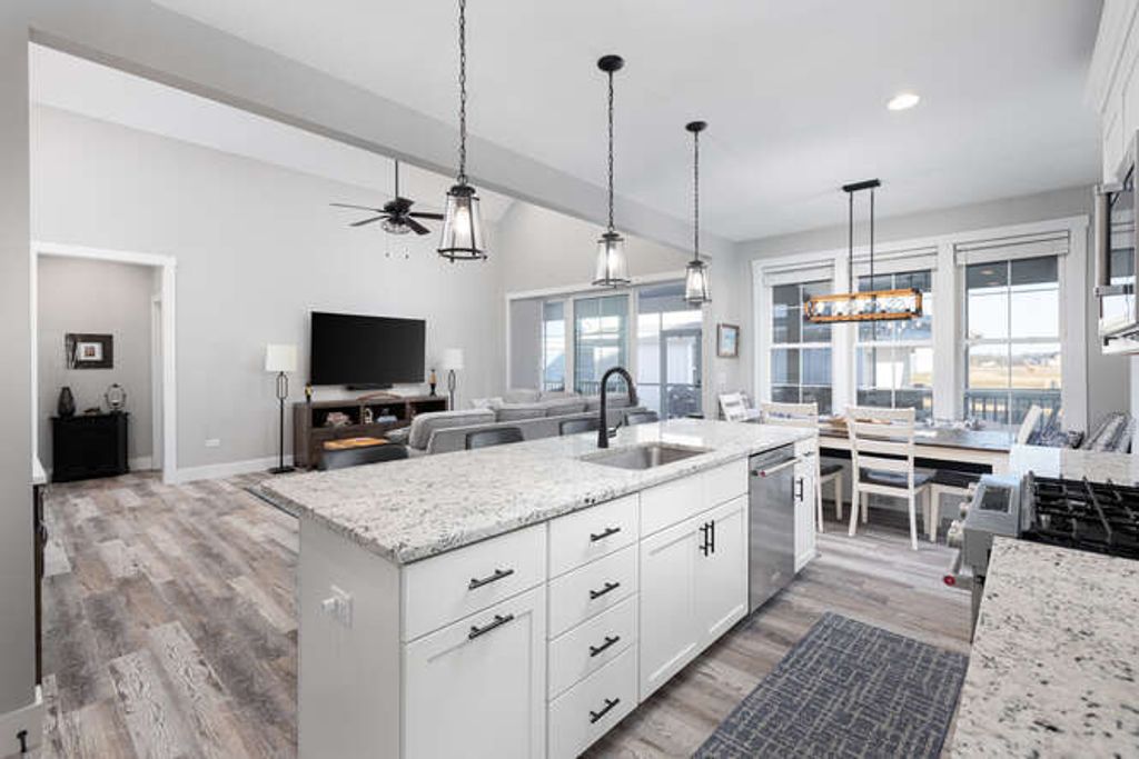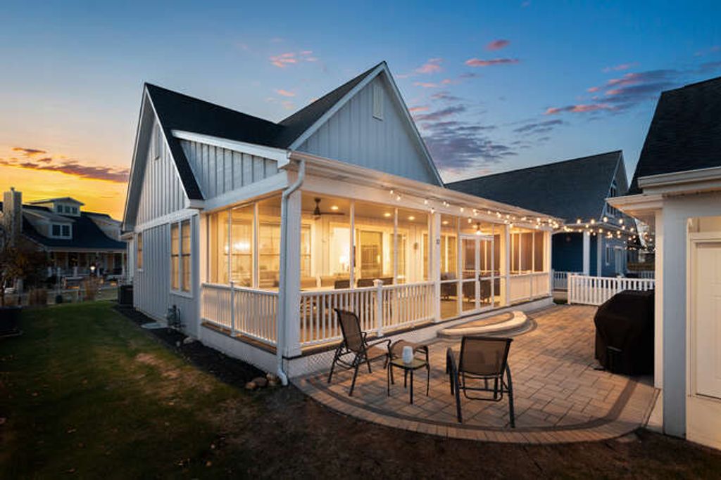 Welcome to this Cape Cod-inspired cottage nestled on Cottage Green in the marina resort community of Heritage Harbor Ottawa. Designed for both comfort and connection, this ranch-style home offers two bedrooms and two full baths on the main level, plus two additional bedrooms and a full bath in the beautifully finished lower level. A spacious flex room downstairs provides endless possibilities-ideal for a home office, fitness studio, playroom, or hobby space. The main floor features an open-concept layout perfect for everyday living and entertaining, highlighted by a vaulted great room with an exposed beam and a stylish dry bar. Quartz countertops, durable LVP flooring, and thoughtful finishes throughout elevate the home's coastal cottage charm. The first-floor laundry room is both functional and convenient, complete with a utility sink, cabinetry, and counter space. Extend your living outdoors on the impressive 400-square-foot screened porch-an ideal outdoor living and dining room for relaxing or hosting friends. The 2.5-car garage provides ample room for vehicles, storage, and recreational toys ready for adventures in Starved Rock Country, while extra yard space allows for convenient golf cart parking. Built with lasting quality, the home features LP Smart siding with stone accents and low-maintenance Trex decking. Situated on Cottage Green, an open shared green space, the setting encourages neighborly connections and offers a safe, welcoming area for pets to stroll and kids to play. Just steps from the 32-acre marina, residents enjoy access to walking paths, pickleball courts, community pools, and vibrant resort-style amenities. Starved Rock State Park is only 15 minutes away, and the I&M Canal Trail-less than a half mile from home-offers miles of scenic biking and walking. This is cottage living at its best, blending charm, community, and an active outdoor lifestyle.