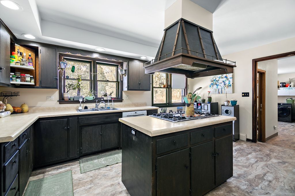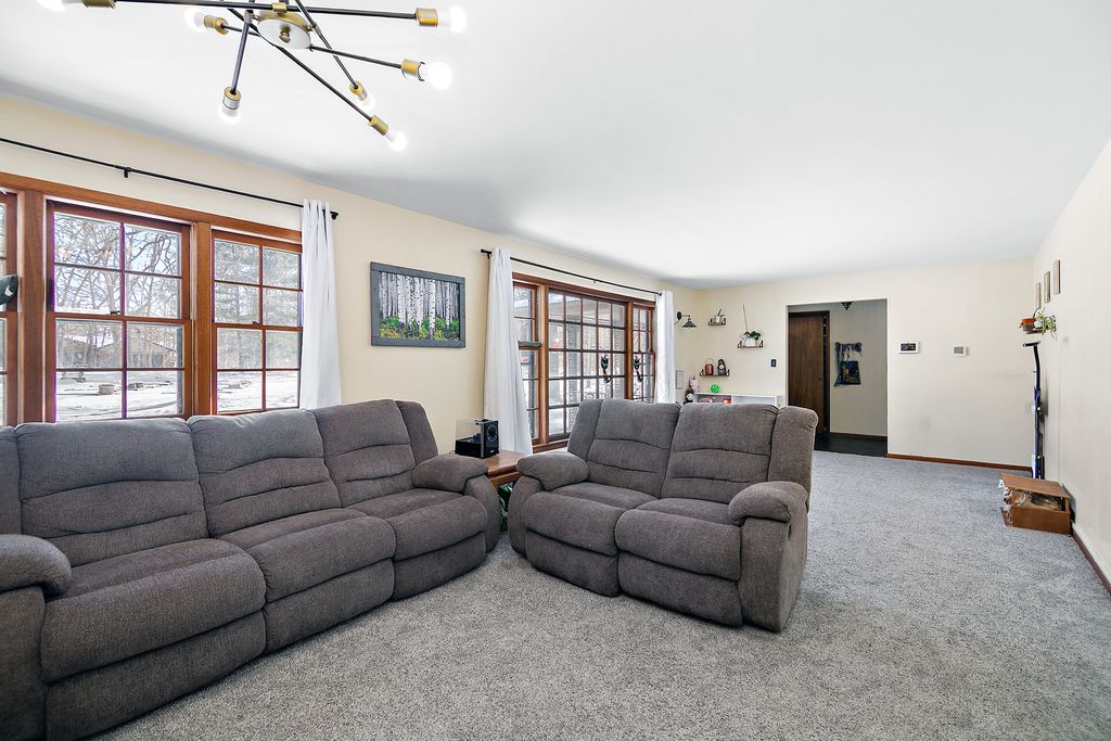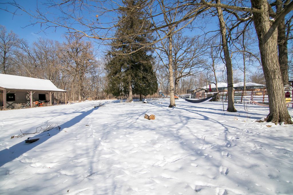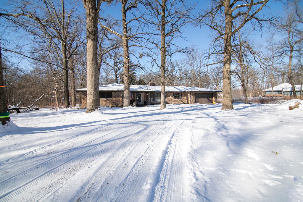 Nestled along a scenic winding road in unincorporated Monee, this expansive brick ranch sits on nearly 3 acres of mature oak trees, offering a private, picturesque retreat. Spanning approximately 2,206 square feet, the home boasts fresh updates, including newer flooring and crisp paint throughout. The spacious living room is bathed in natural light from large windows, while the dining room features a cozy fireplace and gleaming hardwood floors with picture windows framing the serene backyard. The large kitchen includes brand-new flooring, a breakfast nook, and easy access to the laundry area with a new electrical panel and utility sink. A large attached two-car garage houses the brand-new boiler. All three bedrooms are generously sized, while the fully renovated bathroom is a standout-featuring a custom waterproof design, new vanity, and in-floor heating. With room for a hobby farm or peaceful seclusion, this property offers privacy, space, and charm in a great location. Schedule your private showing today!