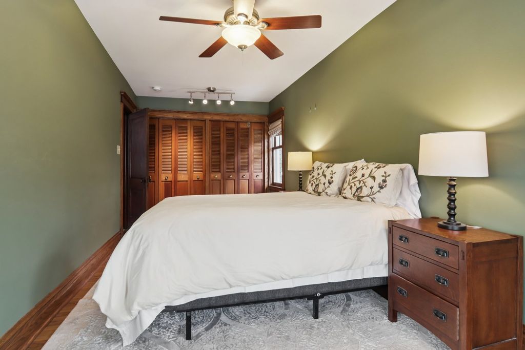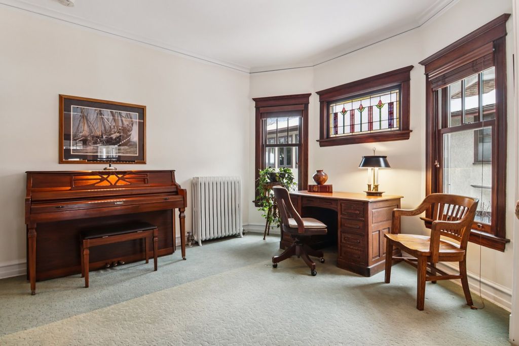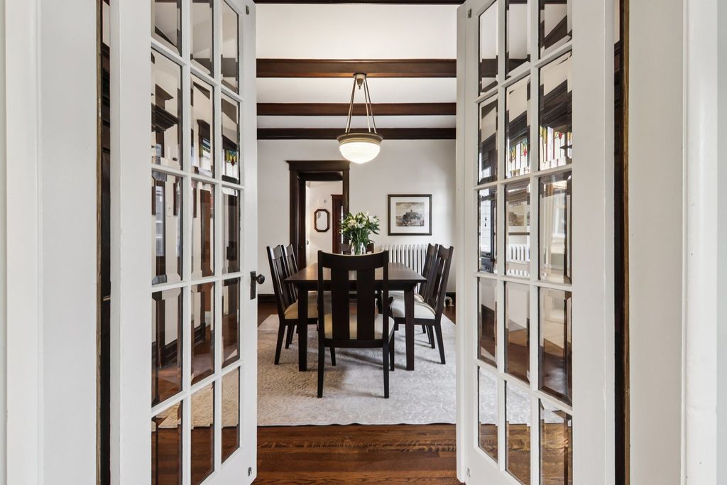 MULTIPLE OFFERS RECEIVED--HIGHEST & BEST OFFERS DUE ON SUNDAY, 2/15 at 5pm Large home in the Gunderson Historic District-this is a rare opportunity to own a beautifully preserved Gunderson home in the heart of Oak Park. Blending timeless craftsmanship with a spacious, updated layout, this historic residence is rich in original architectural detail while offering modern comfort throughout. A generous front porch invites you to relax and gather with friends three seasons of the year. Inside, the welcoming foyer features a gracious staircase highlighted by the original newel post light. The cozy living room is anchored by a decorative marble fireplace, while the original parlor just off the living room offers flexible space ideal for a home office, family room, or additional seating area. The formal dining room impresses with a striking beamed ceiling, an incredible built-in china cabinet, stained and leaded glass, carved wood detailing, and period hardware found throughout the home. The sunny kitchen is light and bright, featuring stainless steel appliances and a generous pantry. An adjacent breakfast room provides even more versatility and can serve as a mudroom, office, or casual living space. The second floor offers four generously sized bedrooms, each with large closets, along with a spacious, tastefully updated full bathroom. The third floor spans the full footprint of the home, delivering exceptional bonus space perfect for a family room, office, bedroom, or creative studio. The basement includes laundry and ample storage and offers a blank canvas ready for your ideas, with the potential for an additional bathroom. Set on a generous lot, the outdoor spaces are equally impressive, featuring a brick paver patio and winding walkways surrounded by professional landscaping-ideal for entertaining or quiet relaxation. A truly special Oak Park home where historic charm, craftsmanship, and outdoor beauty come together seamlessly. Walk to CTA Green and Blue Lines, schools, parks, library, shopping, restaurants, coffee shops, the Arts District, Southtown District, and more. Get ready to fall in love.