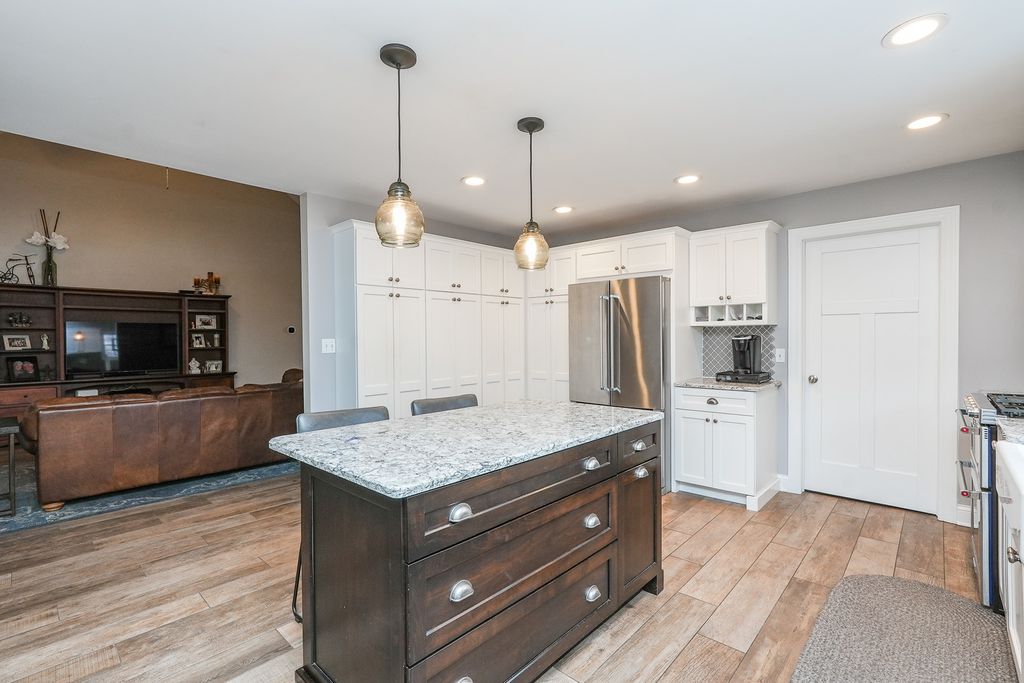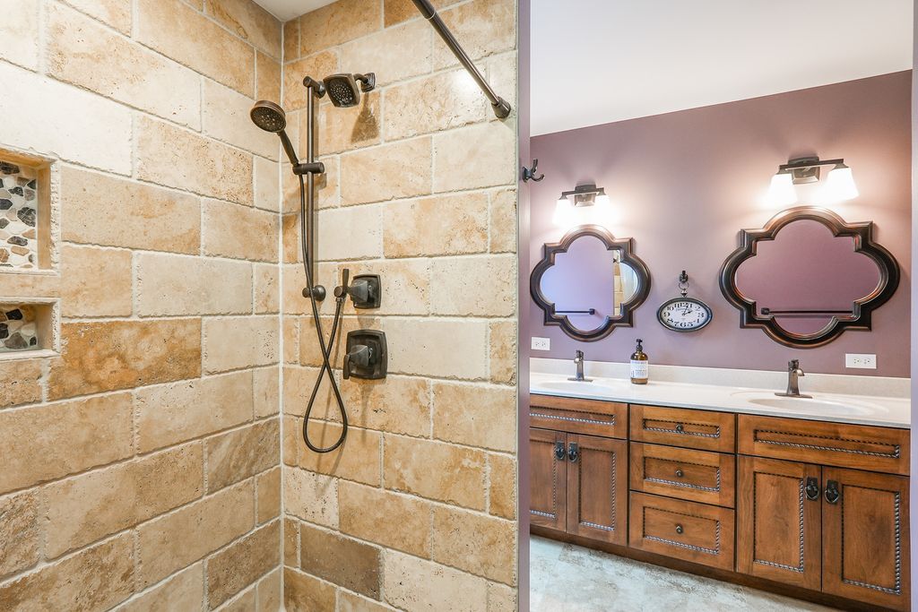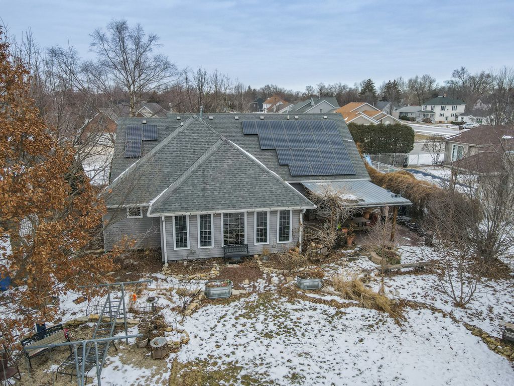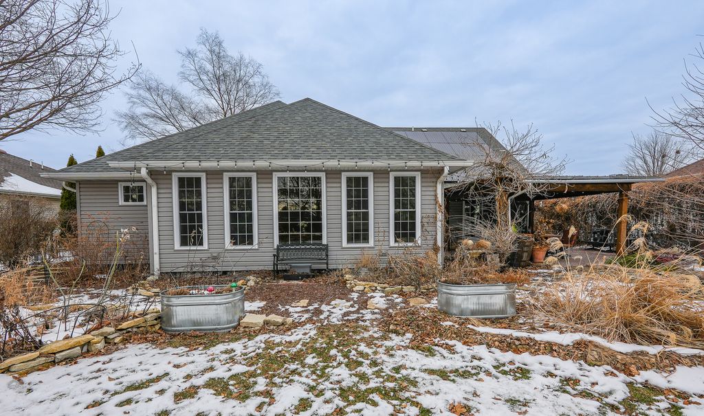 This custom-built 4-bedroom, 3-bath ranch is truly in a league of its own. With over 2,600 square feet of thoughtfully designed living space, this home blends quality craftsmanship, comfort, and efficiency in all the right ways. The open-concept layout is warm and welcoming, highlighted by Italian porcelain tile flooring, fresh paint, detailed trim work, and beautiful Amish-crafted cabinetry. The spacious great room offers views of the backyard, creating a seamless connection between indoor and outdoor living. The primary suite is a true retreat, featuring a generous walk-in closet, cozy sitting area, and a stunning custom stone shower. Upstairs, the fourth bedroom offers endless flexibility-perfect for guests, a home office, or hobby space-and provides convenient access to a walk-in attic showcasing foam insulation for added energy efficiency. Step outside and you'll find a backyard designed for both relaxation and entertaining, complete with a custom pergola, brick patios and pathways, native-species landscaping, a custom shed, and a gas hookup ready for your grill. Practical updates add even more value including furnace and A/C (2016), oversized gutters (2016), and a water heater (2021). Foam insulation in the attic, heated garage, crawl space, and addition enhances comfort year-round, while solar panels help keep energy costs low. Ideally located near a school, park, and Manteno's pathway system, this standout home offers a rare combination of space, quality, and location. This is truly one you don't want to miss.
