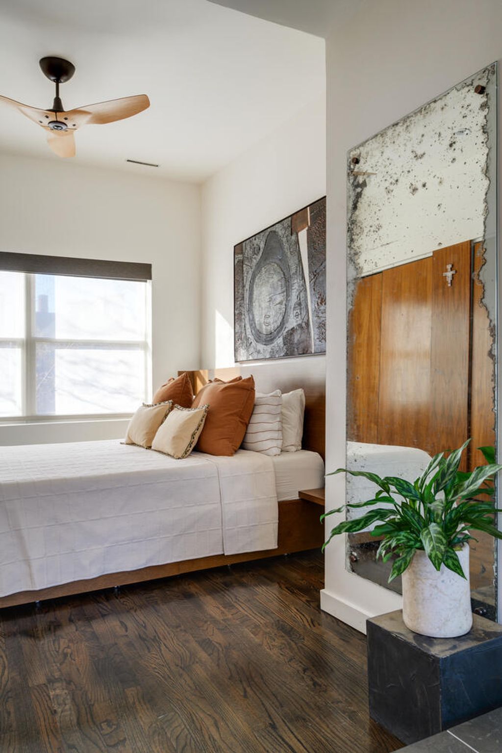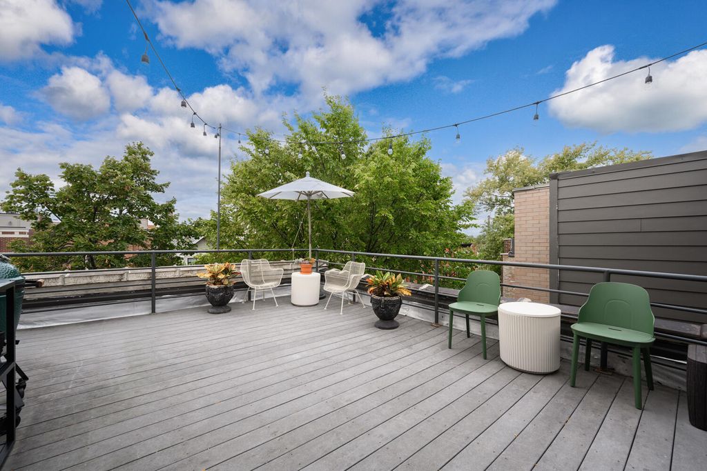 Incredibly rare and expansive multi-level Wicker Park loft row home offering dramatic architecture, exceptional natural light, and one-of-a-kind finishes curated by its designer owner. Soaring 12'5" ceilings, striking southwest-facing windows, and beautiful exposed brick deliver true Chicago loft character-elevated with a level of detail and restraint you simply don't see in the wild. The open, multi-level layout is anchored by a floating custom glass and steel staircase-equal parts functional and sculptural-connecting each living level with effortless flow for everyday life and next-level entertaining. Thoughtful upgrades are everywhere, including all-new lighting throughout, new Emtek hardware across the home, and custom Hunter Douglas shades in every room with remote control + timed automation for that quietly luxurious "the home does it for you" feeling. The kitchen is designed to host: ample prep space, beautiful cabinetry, high-end appliances, and easy bar seating that keeps everyone gathered in the right place. Just off the kitchen, an integrated dining room is filled with sunlight-an instant mood boost and the kind of space that makes mornings feel like a boutique cafe ritual and filled with a soft glow. The powder room is a moment. Like-walking-into-the-hottest-restaurant energy, featuring a custom marble sink, iconic House of Hackney wallpaper, and Brizo hardware-equal parts bold and refined. Three bedrooms are on the second level, including a serene primary suite that lives like a luxury hotel. The primary bath includes an awning window, dual sinks, a gorgeous soaking tub, a large shower, a separate water closet, and generous storage. Just off the suite, a private 10' x 10' outdoor terrace offers the perfect spot for morning coffee or a late-night exhale. Upstairs, a versatile third-floor sky loft-complete with a wet bar-makes an ideal home office, creative studio, or lounge space, with direct access to the massive 26' x 15' roof deck. A brand-new sliding door to the roof makes the transition seamless, and the outdoor space is truly built for gatherings. The lower level brings the vibe: part hip speakeasy, part media lounge, part guest suite-complete with an additional full bath-plus two huge storage rooms (a rarity in loft living). Truly one-of-a-kind in Wicker Park-layered, light-filled, architecturally bold, and styled to feel collected and intentional. It's not just a home. It's a designer experience.