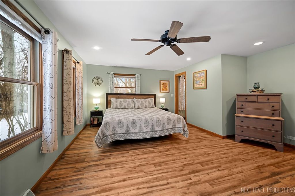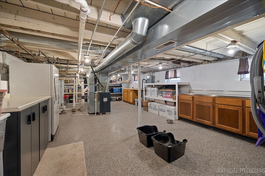 Quiet, established neighborhood with a beautifully landscaped yard featuring mature trees and perennial gardens. Ranch-style home offering 4 bedrooms and 4 full baths with extensive updates throughout. Fully remodeled kitchen (2022) with custom-built cabinetry and island, quartz countertops, tile backsplash, generous cupboard space with spice drawer, built-in wine rack, soft-close drawers and doors, stainless steel farm sink, stainless steel appliances, recessed lighting, under-cabinet, toe-kick, and indirect lighting. Hardwood flooring throughout main living areas. Finished basement includes bar and family room, exercise room with built-in office, and separate workshop, with stairs leading directly out to the brick paver patio. Enjoy outdoor living on a two-tiered deck (15x13 and 13x13) plus patio. Central vacuum system and whole-house fan. CertainTeed architectural asphalt shingle roof replaced September 2017. Extra-large two-bay garage with workspace (21x30 = square footage of a 3 car garage) Includes 8x8 outdoor shed/playhouse. Close to schools, bike and walking trails, walk to downtown Geneva and St. Charles, and just one block from Wheeler Park.