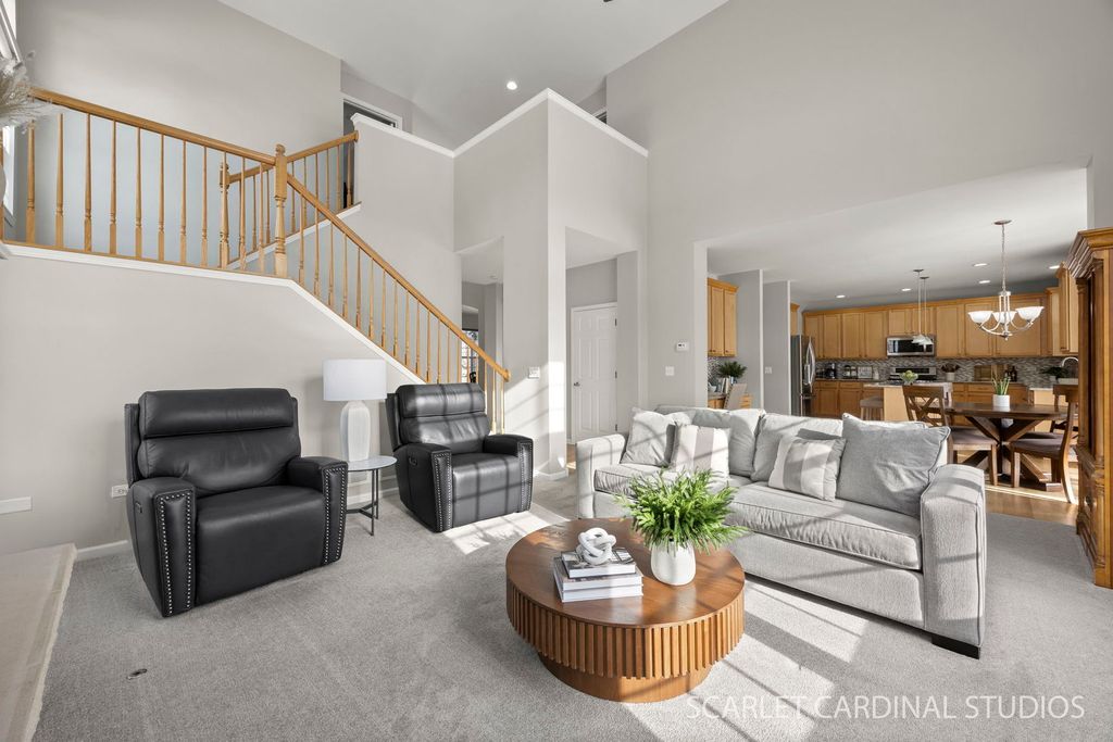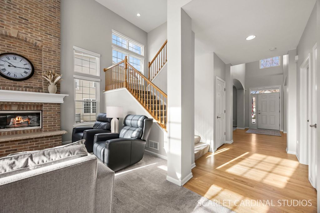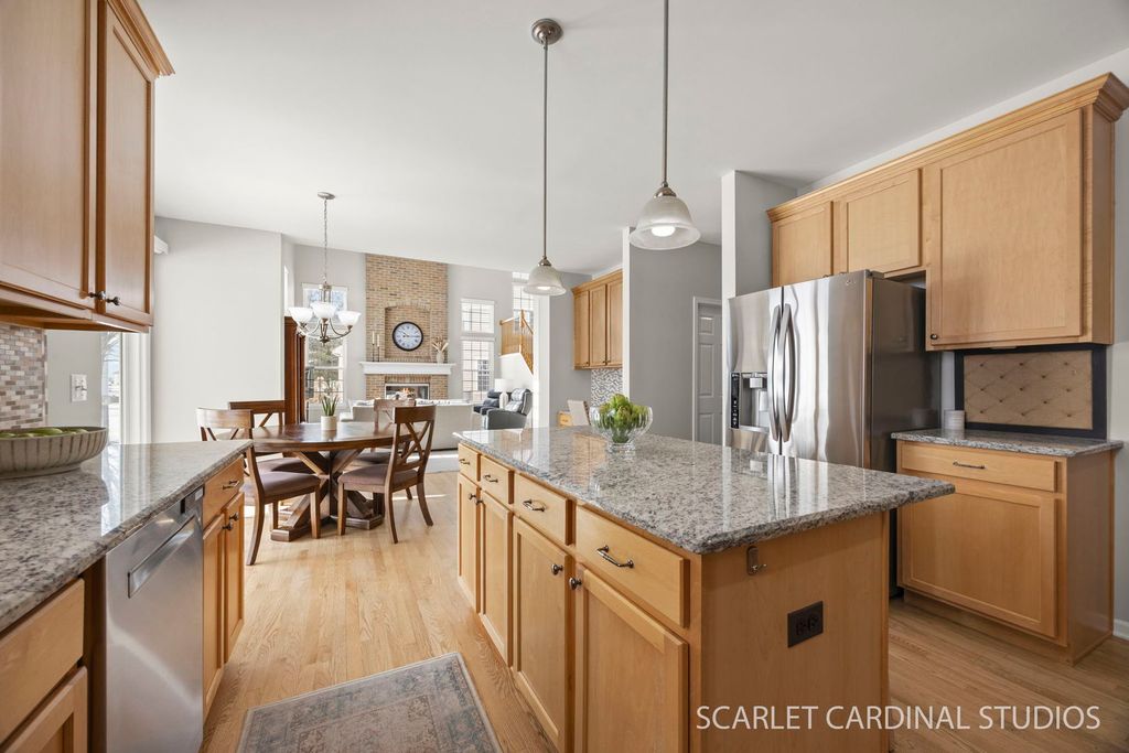 Welcome to 26115 Mapleview Drive. Perfectly situated on a premium lot offering privacy and picturesque pond views, this North Plainfield beauty - set in one of the area's most desirable pool and clubhouse communities - is one you won't want to miss. Step inside and enjoy a formal living room and dining room that sit perfectly nestled on either side of the entry, creating a perfect space to welcome guests. Newly refinished hardwood flooring (April 2025) leads you to the heart of this home - a stunning chef's kitchen designed with every detail in mind, including updated granite counters (2015); modern tile backsplash; a large island with additional seating; a full complement of newer stainless steel appliances; a planning desk area; butler's pantry; and a dine-in area for enjoying breakfast and other quick meals. The kitchen flows seamlessly into a sun-drenched, two-story family room with soaring ceilings, a brick fireplace, and large windows overlooking an expansive and professionally landscaped backyard oasis - an entertainer's dream or the perfect place to unwind. For added convenience, the main floor also hosts a large laundry/mudroom complete with a brand new washer/dryer (June 2025), sink, and door opening to the attached 3-car garage. Upstairs, you'll find four wonderfully spacious bedrooms, including a luxurious primary suite with a walk-in closet and a private, spa-inspired bath adorned with high-end finishes. Each bathroom in the home was beautifully updated in December 2022. On the lower level, a finished basement adds even more versatility - perfect for a media room, home office, gym, or additional living area. Looking for even more space? Step out to a peaceful backyard retreat boasting a patio with brand new pavilion (October 2024) and take in the natural beauty that surrounds this home. Ideally located in highly rated District 202 near Community Park At Grande Park with over 300 acres of open space and 7 miles of trails, and just minutes from shopping, dining, and entertainment, this home is the perfect combination of convenience and community charm. Thoughtful upgrades throughout provide peace of mind, including high-efficiency windows (2020), furnace (2019), roof (2019), radon mitigation system (2019), A/C (2018), and water heater (2017). All that's left to do is move in and enjoy! From chilly peaceful mornings by the pond to neighborhood summers spent enjoying community social events, this is more than just a home - it's a lifestyle. Don't miss your chance to own a home that defines comfort, connection, and timeless appeal!