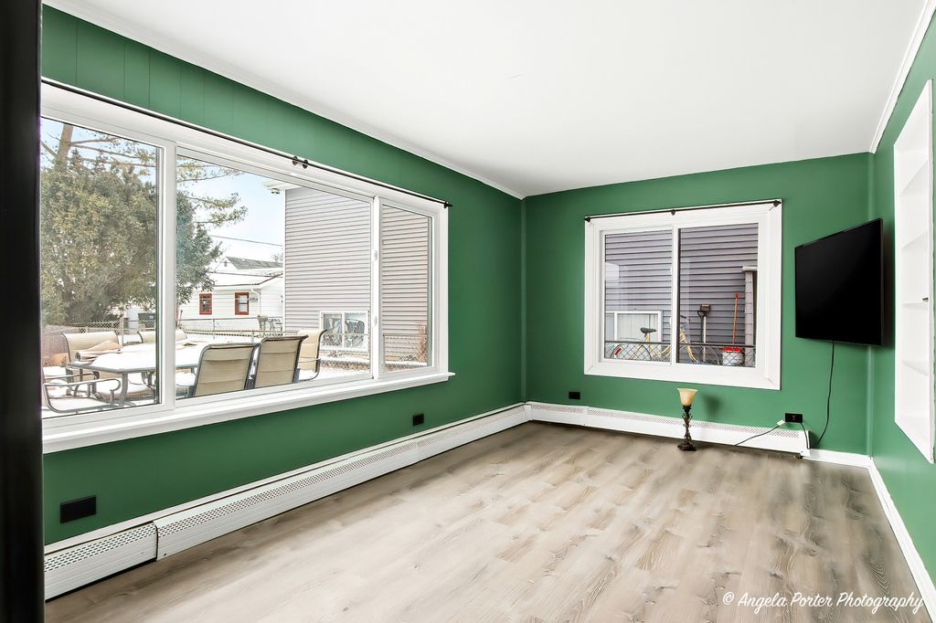 Double lot, fully fenced 2-bedroom home featuring built-ins throughout, a 2-car detached garage, and a storage shed. Includes two PINs (second PIN: 0628133018), with taxes reflecting both parcels. Major updates include a new roof and boiler (2025), water heater (2023), newer windows (approx. 3 years old), and a brand-new deck (2026). All new gravel recently installed. Nicor is scheduled to install a new gas line in the spring. Refrigerator, stove, microwave, washer, and dryer are included.