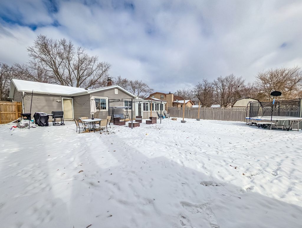 Well-maintained, move-in-ready one-story ranch home in Bolingbrook with an expansive backyard. Freshly painted and thoughtfully updated, this home offers a bright, comfortable layout with plank flooring and a clean, modern feel throughout. The updated kitchen features modern cabinetry, stylish fixtures, and professional-series Frigidaire stainless steel appliances, including a newer stove (2025). The family room provides a cozy fireplace, ceiling fan, and recessed lighting, with sliding glass doors opening to an extended sunroom-ideal for everyday living, entertaining, or relaxing year-round. The updated bathroom includes new flooring, a barn-door vanity, updated plumbing fixtures, toilet, and lighting, along with newer kitchen and bathroom sink faucets for a cohesive, polished finish. Recent improvements include a new water heater (2025), furnace cleaned and serviced (2025), upgraded bedroom lighting, and a newly built storage shed (2025). Outdoor highlights include a 6-foot wood privacy fence (2024) and a backyard gazebo (2024), creating a private, functional outdoor space. The sellers are also open to leaving the backyard trampoline, adding extra value and enjoyment for the next owner. This home has been exceptionally well cared for and thoughtfully maintained, and the sellers are upsizing-making this a great opportunity for the next buyer to move right in. Conveniently located near schools, parks, Pelican Harbor Water Park, and the Bolingbrook Recreation & Fitness Center. Welcome home.