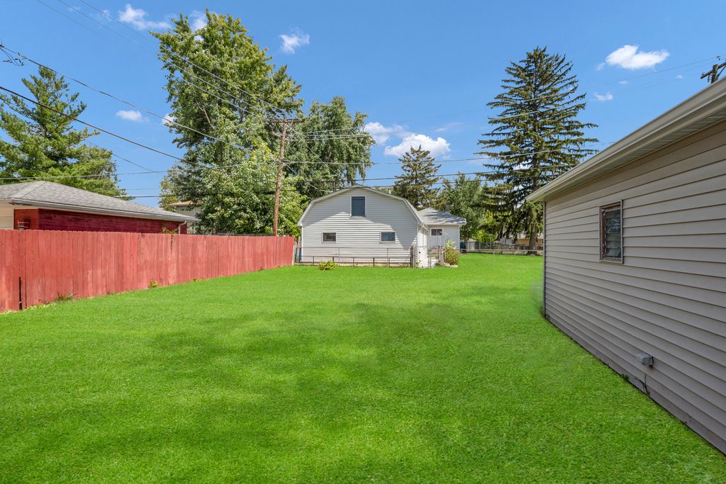 Spacious 5-bedroom, 3-bath home with fresh paint, new carpet, and a newer roof (2017). Enjoy a fenced yard with deck, 2.5-car garage, and driveway parking for six. Walk to the Metra, shopping, schools, library, pool, and parks, with easy highway access. This home features window A/C units and a boiler heating system.