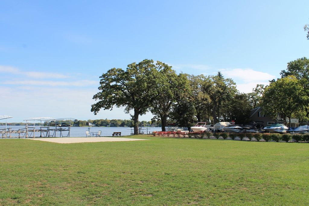 This 2 bedroom 1 bath ranch style unit in scenic Woodhills Bay, is ready for you to make it yours! This waterfront complex on Fox Lake is the perfect place to call home! Seller has made some recent updates including brand new hardwood floors in iving room, and a new fireplace facade. Kitchen has new updated sink, faucets and disposal! The unit has a stackable washer/dryer, as well as a laundry sink. Large master bedroom has two wall length closets and access to shared bath. Bath has new Kohler toilet and faucets. Triple sliders run the length of the building, providing lots of light! Unit includes 25 foot long garage with large storage room. Seller installed water softener and filter! With a little more updating, you will be up and running ready to enjoy the spring and summer! The lakefront features beach, boat launch, clubhouse with outdoor pool, playgound, and new piers! Slips $1250, optional seasonal boat storage $200. Unit is just a few blocks to Metra train, bike paths, Lake Front Park, restaurants and downtown Fox Lake! A/C is newer, but as-is.