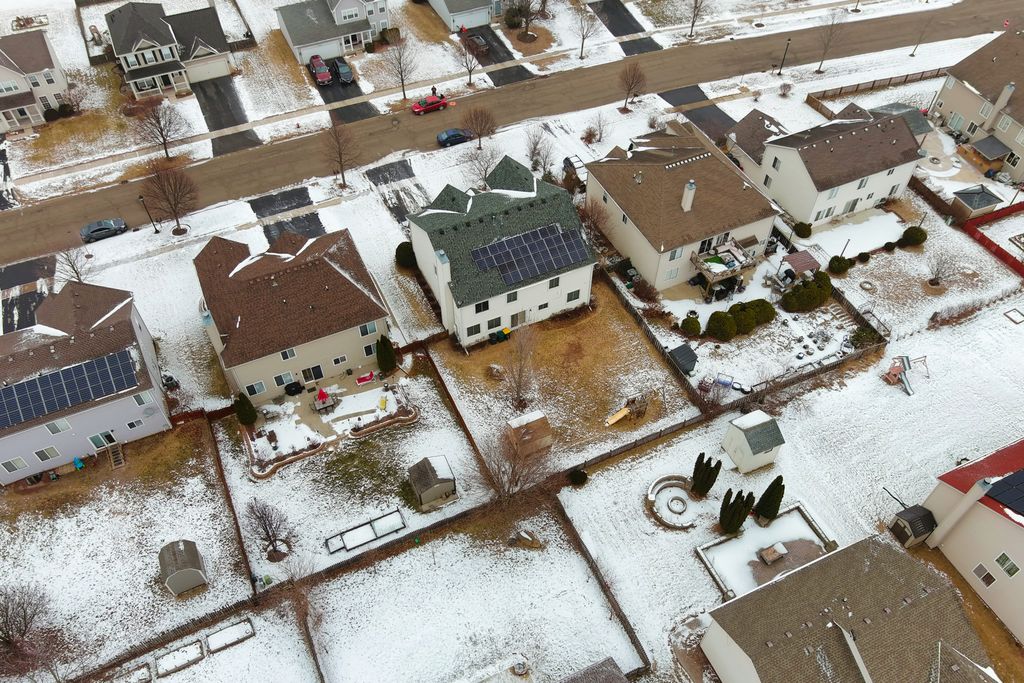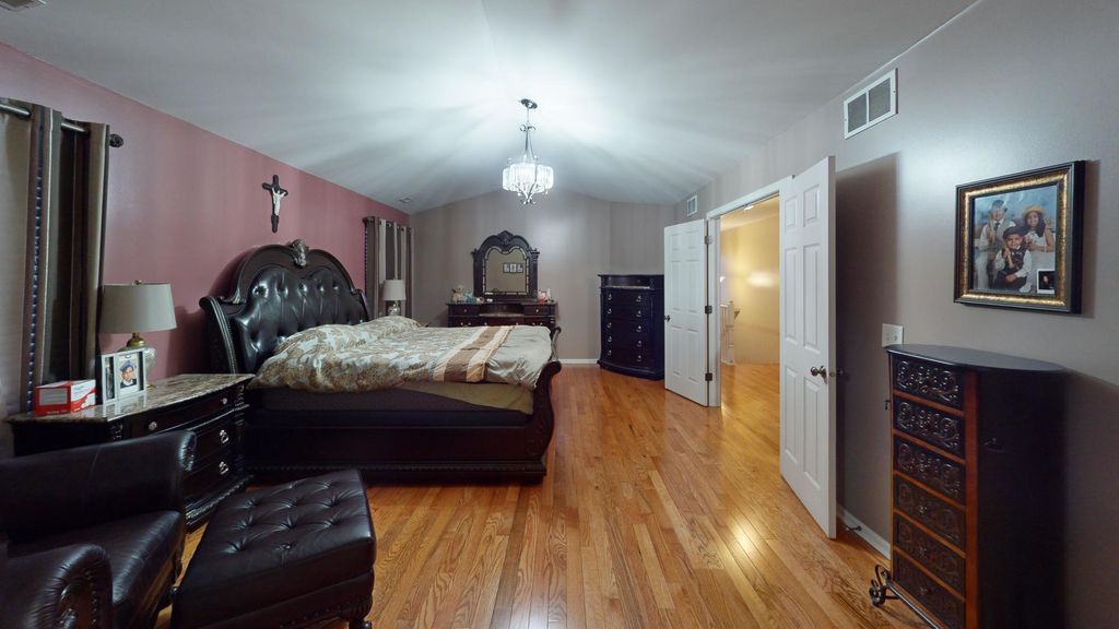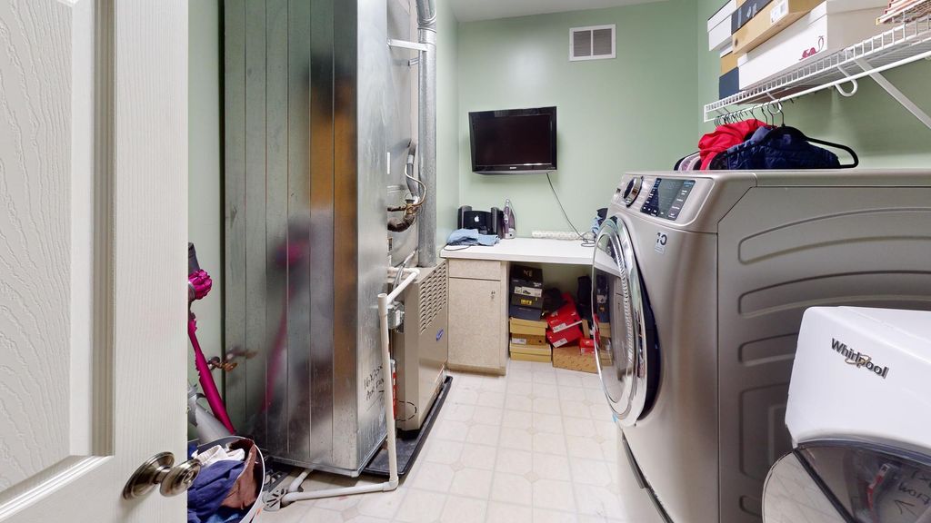 This expansive two-story residence offers 3480 sq. ft. of thoughtfully designed living space. The ground floor, encompassing 1310 sq. ft., features an inviting open-concept layout that seamlessly integrates the kitchen, dining, and living areas. The kitchen boasts rich wood cabinetry, stainless steel appliances, and a convenient center island with bar seating. Adjacent, a formal dining room perfect for entertaining. The upper level, spanning 1650 sq. ft., houses four bedrooms, including a spacious primary suite. Three well-appointed bathrooms serve the home's occupants. An office provides a dedicated workspace, while a laundry room adds practicality to daily life. Throughout the home, hardwood floors, neutral wall colors, and ample natural light create a warm and welcoming atmosphere. The living areas and . Multiple hallways ensure easy navigation between rooms, while closets and built-in storage solutions maximize space efficiency. This home's layout and amenities cater to both family living and entertaining, offering a harmonious blend of comfort, functionality, and style. -Dishwasher is AS IS Solar panels are leased.