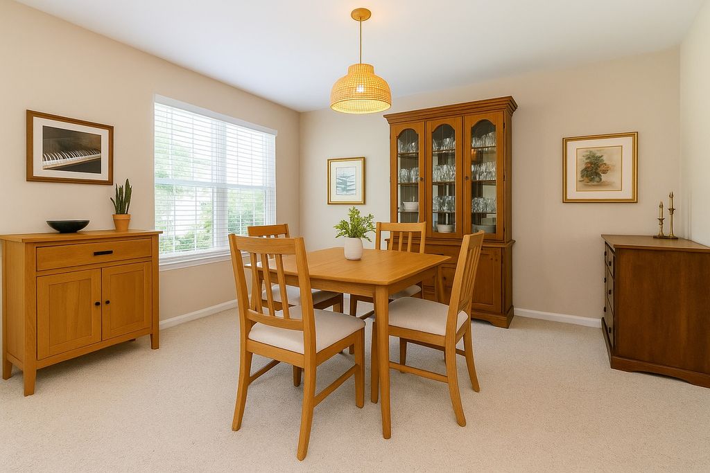 Move right into this beautifully maintained Cartier model ranch in the highly desirable 55+ Carillon community, perfectly positioned on a bright, corner lot in the Aberdeen section. Thoughtfully updated and well cared for. The home offers two bedrooms, two full baths, a two-car garage, and a full unfinished basement with roughed-in electric, ideal for storage or future finishing. Inside, you'll appreciate hardwood floors installed in 2014, a light and open living and dining area, and a welcoming bay-window breakfast nook. The kitchen features newer stainless steel appliances, making it as functional as it is inviting. One of the standout features is the rare Four Seasons sunroom, complete with skylights and tranquil views of the professionally landscaped yard, creating the perfect space to relax year-round. The spacious primary suite includes dual closets, including a walk-in, and a private ensuite bath with a soaking tub, separate shower, and room for a double vanity. The second bedroom and full bath offer comfortable space for guests or a home office. Updates add confidence and value, including new carpet in 2021, a water heater replaced in 2023, a new front door in 2023, and fresh interior paint completed within the last few years. Additional highlights include built-in garage shelving, a new sump pump with battery backup, and well-maintained mechanicals throughout. For added peace of mind, a home warranty is being offered with the property, providing extra comfort for the next owner. Carillon offers true resort-style living with indoor and outdoor pools, a fitness center, clubhouse, golf course, scenic walking paths, and a full calendar of social activities, all just minutes from shopping, dining, and convenient highway access.