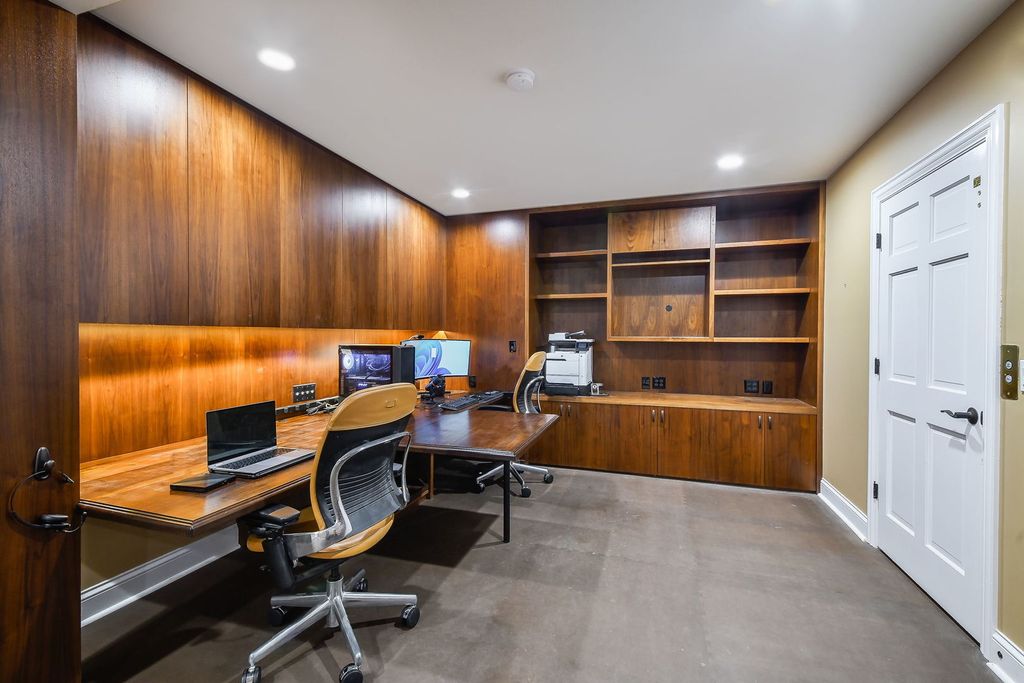 Elevated Architecture. Designed to Entertain. Built to Impress. Extraordinary all-brick double townhome, offering dramatic scale, refined craftsmanship, and luxury amenities. Vaulted ceilings, dual staircases, and a private elevator create architectural presence and effortless flow throughout. At the hub of the home, a chef's kitchen designed by the Kitchen Studio delivers statement design and professional performance - Sub-Zero PRO refrigerator, Viking ovens, dual dishwashers, oversized quartz island, beverage fridge, ice machine, a commercial-grade ice cream maker and separate eating area. The adjoining dining room accommodates an 18-seat table and opens seamlessly to expansive entertaining spaces. The sitting and living rooms are divided by a striking double-sided stone fireplace with recessed firewood storage. A fully customized bar room elevates hosting with dual beer taps, wine dispensing system with argon preservation, Sub-Zero wine storage, rough-cut beam accents, and a dramatic LED-backlit liquor display wall. The primary suite offers vaulted ceilings, custom California Closets, and a spa-inspired bath with heated floors, towel warmers, and multi-head shower. The finished lower level is a destination of its own with a 25x30 private theater with Sony laser projector, surround sound with six in-ceiling speakers wet bar and shuffleboard. The in-home gym has mirrors and Vita Vibe dance bar. A separate lower-level family room and office with custom built-ins rounds out this large basement. Professionally landscaped grounds surround an oversized brick paver patio with wrought-iron enclosure. Dual heated two-car garages and dual driveways reinforce the estate's scale and presence. This is not simply a home - it is a fully integrated luxury environment designed for entertaining, comfort, and distinction.