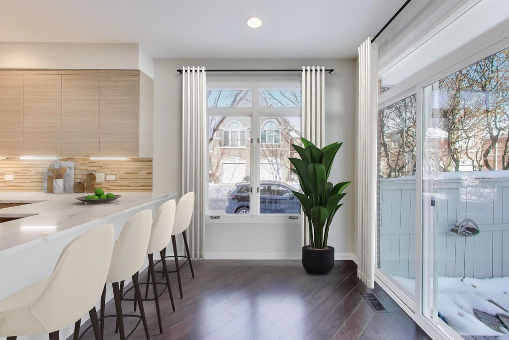 Welcome to Sauganash Village! This sun-drenched, all-brick, corner townhome-originally the model-is located in one of Chicago's most sought-after North Side communities-Sauganash. Featuring 3 spacious bedrooms and 2.5 baths, this home lives like a single-family residence with 3 woodburning/gas fireplaces! The newly renovated kitchen shines with brand-new cabinets, quartz countertops, and stainless-steel appliances (range, refrigerator, and microwave). With its cozy fireplace and breakfast area, it's the perfect place to gather. Upstairs, you'll find all three bedrooms, including a luxurious primary suite with vaulted/wood beamed ceiling, a large walk-in closet, large updated bathroom, and its own fireplace. The second upstairs bathroom has also been updated. The large repaved patio is ideal for entertaining or quiet evenings outdoors. The 2.5-car garage has built in cabinets and storage loft with pull down stairs. And, the huge, open basement offers incredible space and flexibility to add a 4th BR and 3rd full bath. Practical upgrades include: updated powder room; custom moldings throughout, wainscotting and chair rails throughout; recessed lighting throughout; antique lighting fixtures; newer furnace (2018); two water heaters (80 gallons total); washer/dryer hookups on the bedroom and lower level; and new sump pump (2024). This professionally landscaped community is located in the highly rated Sauganash School District. The home is within walking distance of Sauganash Park, forest preserve trails, Starbucks, restaurants, shops, and more. Enjoy easy access to the Edens Expressway, public transit, and the Edgebrook Metra. Experience the comfort, space, and lifestyle of Sauganash Village-your perfect place to call home.