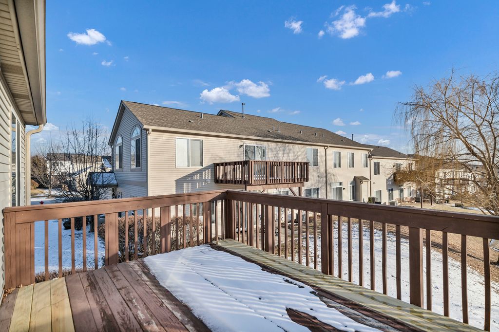 Welcome home to this beautifully maintained 2-bedroom ranch townhome in the highly desirable Grand Pointe Trails community of Aurora. Freshly painted throughout, this light-filled unit features a spacious living room with vaulted ceilings and abundant natural light, seamlessly flowing into the dining area-perfect for everyday living and entertaining. The kitchen offers 42-inch cabinets, a large island with breakfast bar seating, and a sliding glass door leading to a private balcony. Enjoy the convenience of main-level laundry and retreat to the generously sized primary bedroom featuring vaulted ceilings, a walk-in closet, and a private ensuite bath. A second bedroom, ideal for a guest room or home office, along with a full hall bath, completes the space. Start your mornings on the balcony overlooking professionally landscaped grounds (the association will be power washing and staining the balcony), and enjoy a prime location close to shopping, dining, parks, and easy access to major highways-this home truly offers comfort, style, and convenience in one perfect package.