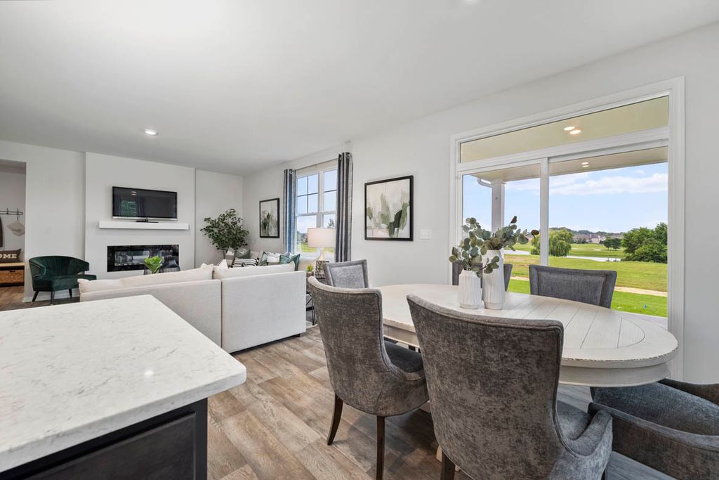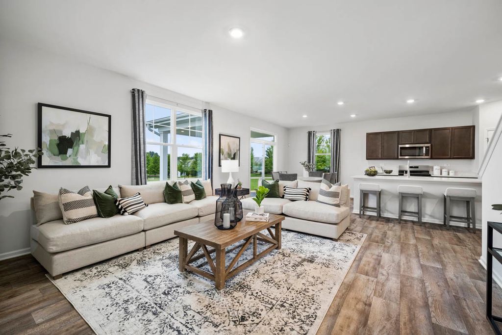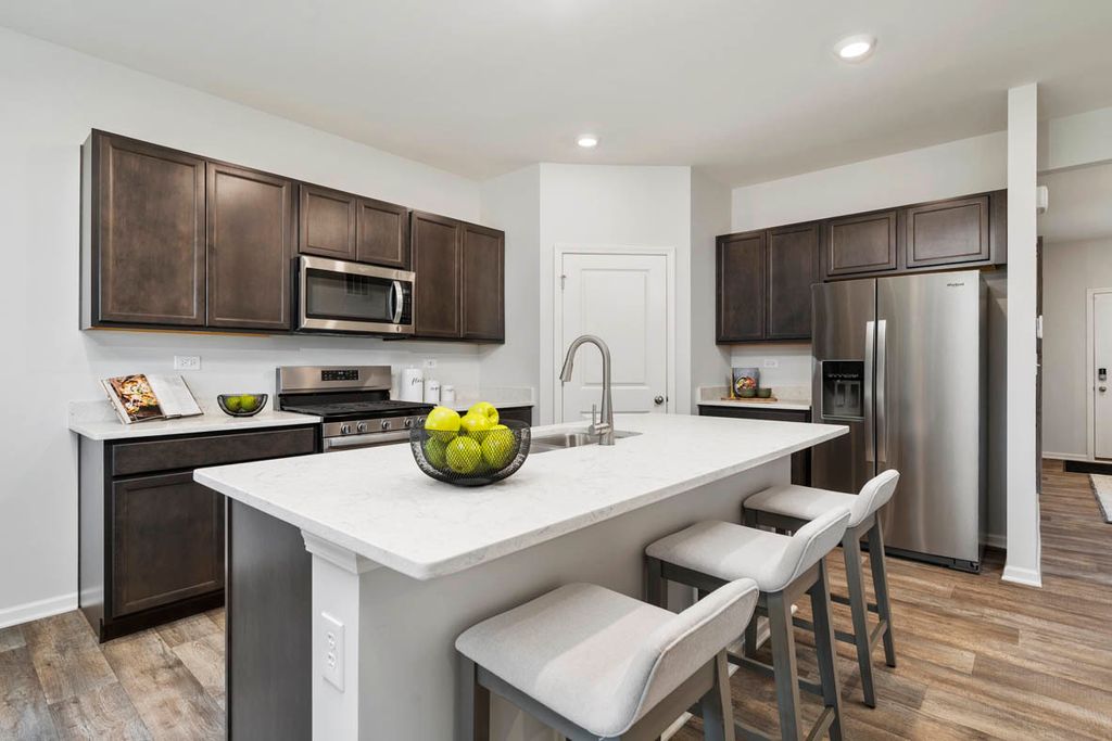 Envision yourself at 1211 Tiger Lily Dr, Bartlett Illinois, a beautiful new home in our Grasslands Community. This 2-story single family home will be ready for a Summer move-in! This large, scenic homesite includes a fully sodded yard and beautiful landscaping. This Henley plan offers 2,600 square feet of living space, offering 4 bedrooms, 2.5 baths, a loft, 9-foot ceilings, and so much more. Entertaining will be easy in this open-concept kitchen and family room layout with a large island with an overhang for stools, 42-inch designer cabinetry with soft close drawers and crown molding. Additionally, the kitchen features a walk-in pantry, modern stainless-steel appliances, quartz countertops, and easy-to-maintain luxury vinyl plank flooring. Enjoy your private getaway with your large primary bedroom and en suite bathroom with a raised height dual sink, quartz top vanity, and walk-in shower with fiberglass surround and glass shower doors. Convenient walk-in laundry room, 3 additional bedrooms with a full second bath and a linen closet. All D.R. Horton Chicago homes include our America's Smart Home Technology, featuring a smart video doorbell, smart Honeywell thermostat, smart door lock, Deako smart light switches and more. Photos are of similar home and model home. Actual home built may vary.