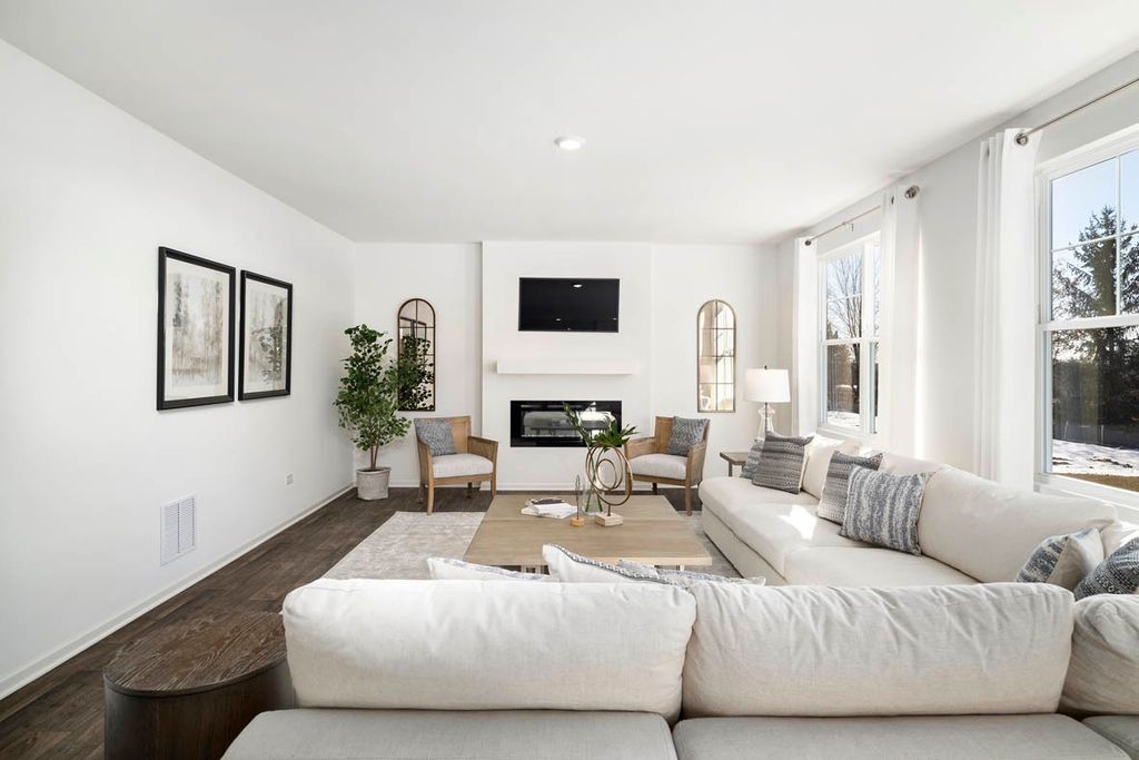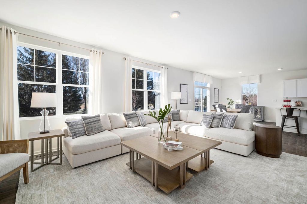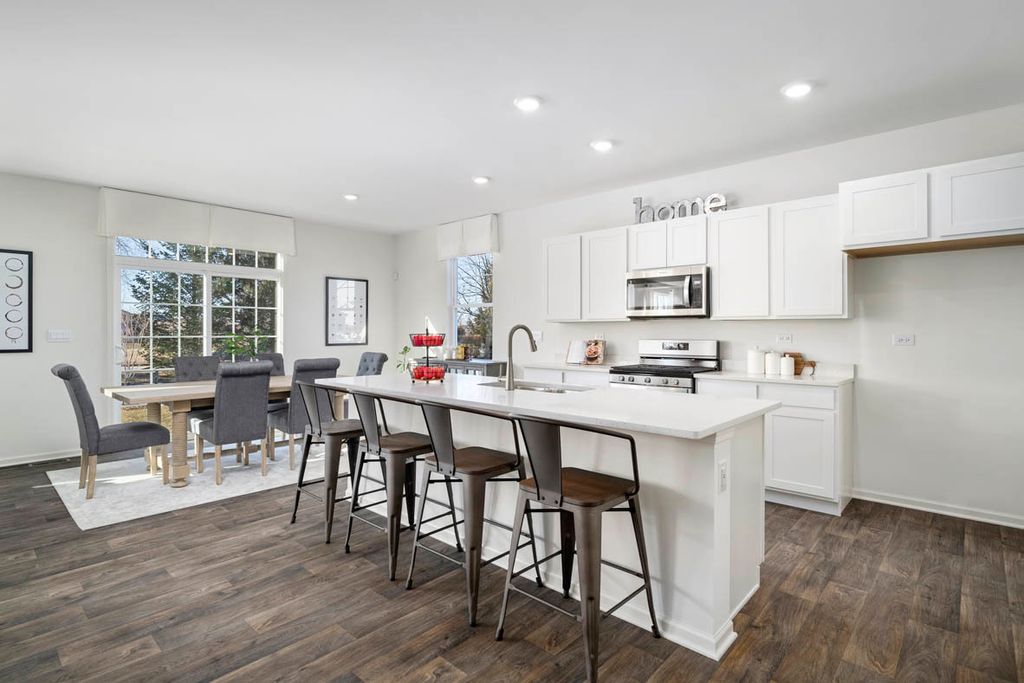 Discover yourself at 1208 Wildflower Lane in Bartlett, IL, a beautiful new home in The Grasslands community. This home is ready for a fall move-in! Homesite includes fully sodded yard, landscape package, a deck, and spacious back yard. This Coventry plan offers 2, 836 square feet of living space with a flex room, 4 bedrooms, 2.5 baths, 9-foot ceilings on the first floor, and full walk-out basement. Entertaining will be easy in this open-concept kitchen and family room layout with a large kitchen island with an overhang for stools, 42-inch designer cabinetry with crown molding and soft close drawers. Additionally, the kitchen features a butler's pantry, modern stainless-steel appliances, quartz countertops, and easy-to-maintain luxury vinyl plank flooring. More flexible space is waiting upstairs with the second-floor loft, offering unlimited potential to suit your needs. Enjoy your private getaway with your large primary bedroom and en suite. The primary bath includes a raised height dual sink, quartz top vanity, and walk-in shower with clear glass shower doors. Convenient walk-in laundry room, 3 additional bedrooms with a full second bath, and a linen closet compete the second floor. All Chicago homes include our America's Smart Home Technology. Photos are of similar home and model home. Actual home built may vary.