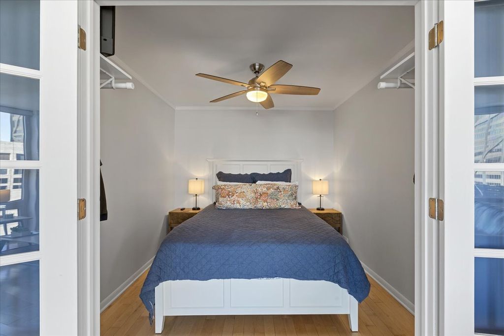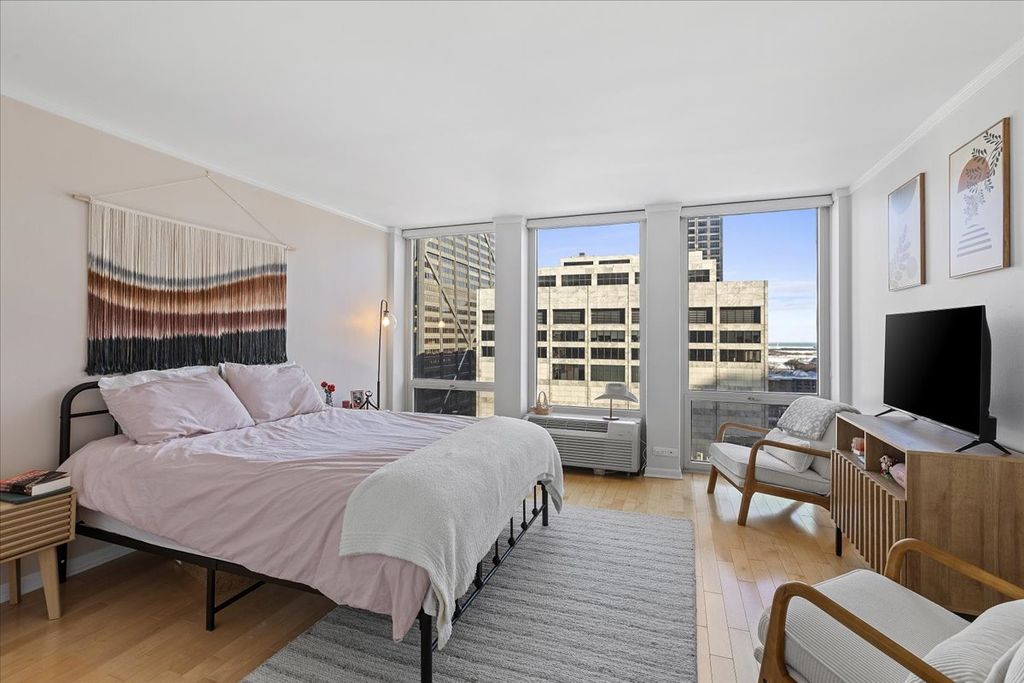 Come see this stunningly updated 1-bedroom plus den condo in the heart of the highly sought-after Gold Coast. Offering 1,000 square feet of thoughtfully designed living space, this home features hardwood floors throughout and dramatic floor-to-ceiling windows with beautiful east facing city and lake views. The open kitchen has been tastefully modernized with white cabinetry, black accent hardware, granite countertops, and stainless steel appliances, and flows seamlessly into the living area with a convenient breakfast bar for seating. A stylish den with glass French doors adds incredible flexibility-perfect for a home office, guest space, or cozy lounge. The oversized primary bedroom offers exceptional comfort and storage with two separate closets. An in-unit washer and dryer-an uncommon and highly desirable feature in the building-adds everyday convenience. The building itself is full-service and amenity-rich, featuring 24-hour door staff, an outdoor pool, sun terrace with grills, party room, fitness center, business center, and more. Ideally located just steps from Lake Michigan, Oak Street Beach, the Magnificent Mile, and Rush Street, with easy access to the One Chicago development, including a brand-new Whole Foods and Life Time Fitness. Don't miss the opportunity to own a spacious, move-in-ready home in one of Chicago's premier neighborhoods-schedule your private showing today.