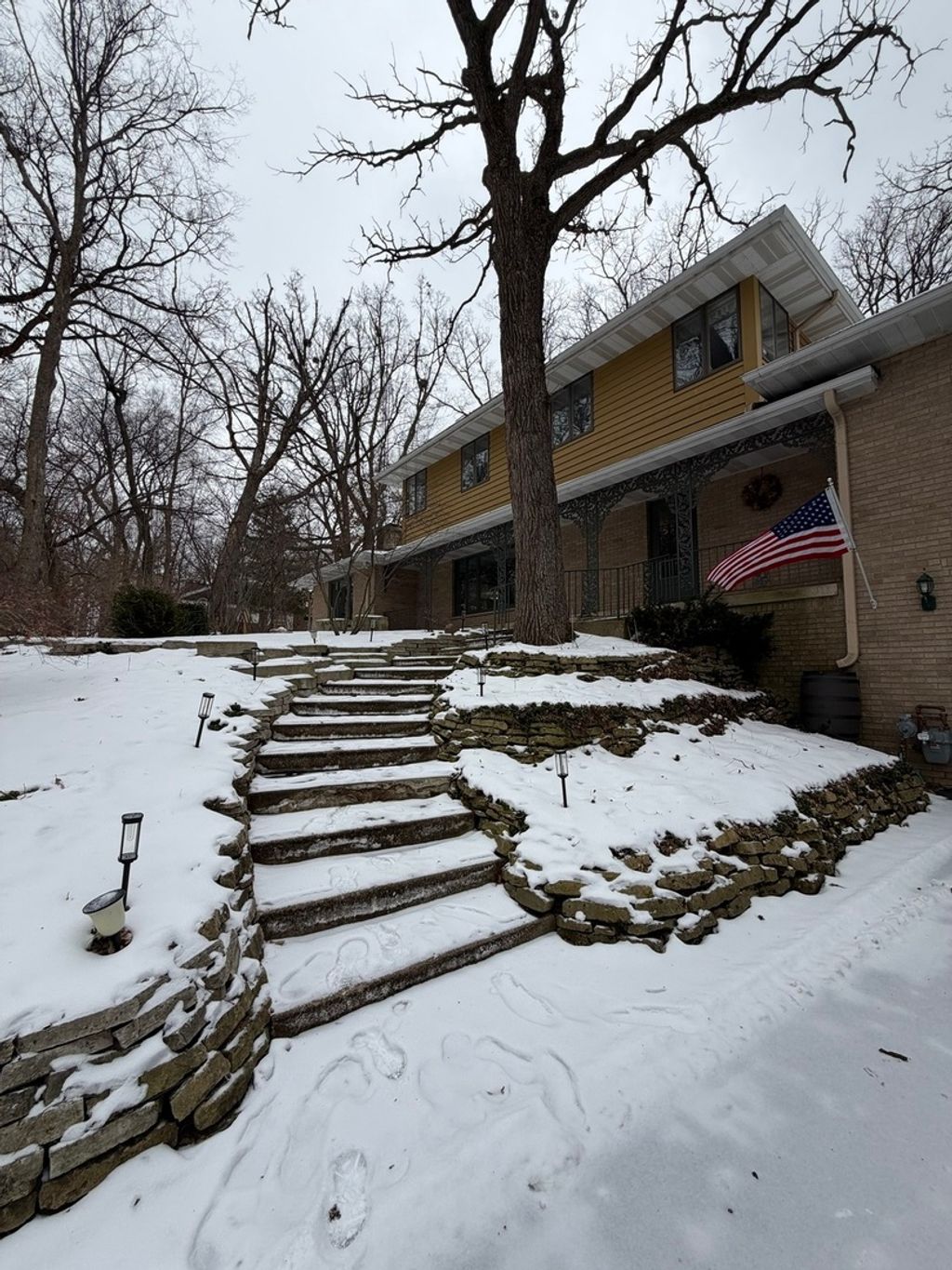 Experience tranquility in this exceptional home set on a secluded, mature wooded half acre lot. Located two minutes from the Fox River and I-90, the property sits elevated on a gentle hill, offering picturesque views of the professionally landscaped grounds. Both the front and backyard provide a peaceful, private retreat. Upon entering this solidly built beautiful home, you're welcomed by a spacious living room featuring a huge picture window. From there, you flow into the inviting family room and dining area surrounded by extra-large picture windows and a wood burning fireplace. The kitchen offers a charm with solid wood cabinets. There is plenty of storage areas as well as stainless steel appliances. The kitchen has an eating area has a large picture window overlooking the secluded rear yard, patio and custom fountain. Travertine and oak flooring add warmth and character throughout the home. A recently updated three season room offers an additional space to relax and enjoy the surrounding views. The main level primary bedroom provides generous space with walk in closet and is complemented by a newly renovated bathroom with a huge walk in shower, custom double sink vanity and a heated floor. This five bedroom home features two full baths that have been remodeled with high-end finishes. There are additional 1/2 baths located in the home. Upstairs, you'll find three sizable bedrooms with walk-in closets, along with a loft area. The second-floor bathroom has been remodeled and customized with an oversized champagne bubble bathtub. The finished basement includes a versatile living area, a large utility room, and a convenient half bath located off the laundry room. Another storage feature is the extra clean crawlspace. The home includes numerous updates, making it a comfortable and inviting place to relax and take in the scenery. Enjoy the surrounding nature year round-whether birdwatching or spotting deer that occasionally wander through the yard. The expanded two car garage provides extra storage.