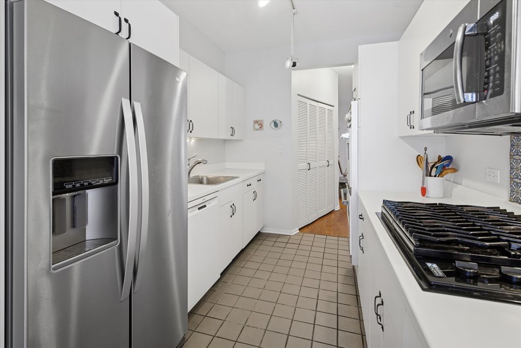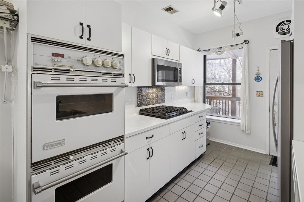 Welcome to this top-floor 2 bed, 2 bath condo in a stunning Greystone building on a tree-lined street in Margate Park. This well-maintained vintage walk-up offers a spacious layout with a sunlit living room featuring a wood-burning fireplace and Juliette balcony. The separate dining room easily seats 10 and flows into the updated kitchen equipped with a Viking double oven, Russell Range cooktop, Corian counters, and newer refrigerator. Enjoy the en-suite primary bedroom with a jetted tub, stone shower surround, and Roburn mirror. Additional highlights include in-unit laundry, tankless water heater, central air, large private deck (20' X 10'), EV-capable garage parking, and extra storage. The beautifully landscaped backyard offers a serene escape with pavers, fountain, and seating. Steps to the lakefront, red line, Uptown entertainment, and more. 1-year home warranty starting June 2026 thru June 2027, included.