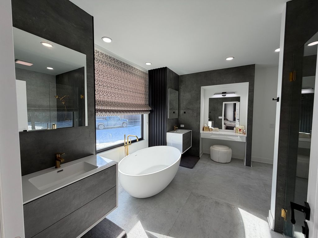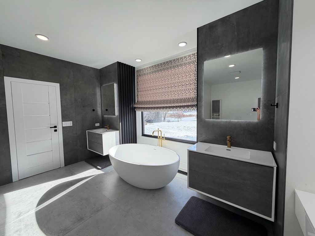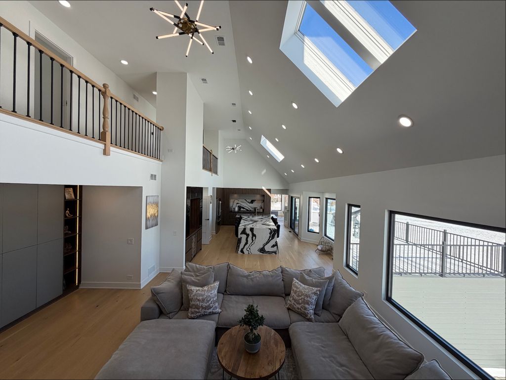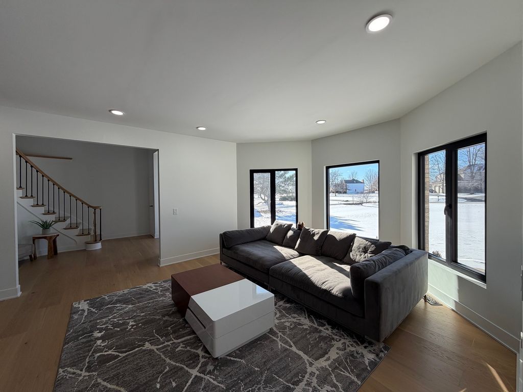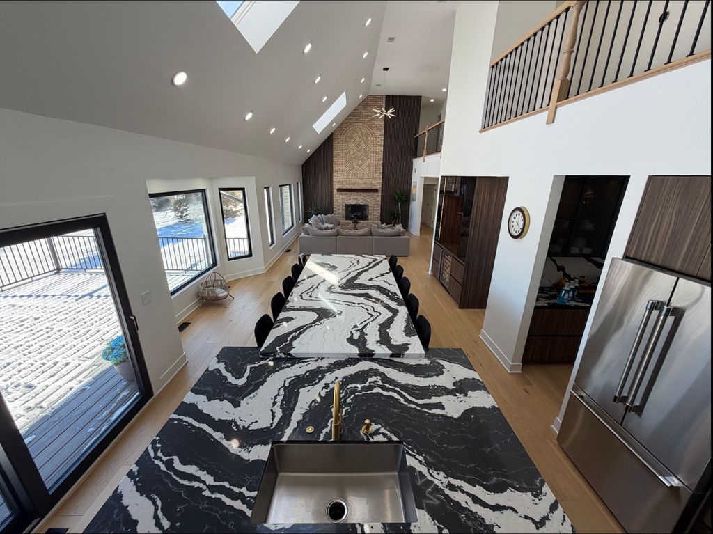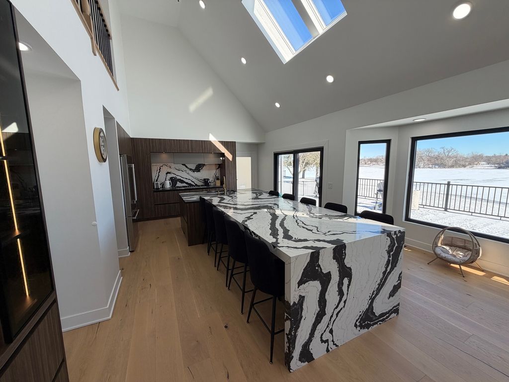 A truly one-of-a-kind lakefront custom home on a private 1.3-acre. Fully renovated in 2025 and in pristine, move-in-ready condition, this home offers top-of-the-line finishes throughout. Updates include a new roof, siding, all-new European windows and doors, new hardwood floors, a new furnace, A/C, and more, allowing the next owner to move in and enjoy immediately with complete peace of mind. The modern kitchen is both stylish and functional, featuring quartz countertops, a large island, a custom buffet and bar, and high-end Thermador stainless steel appliances. A cozy sunroom off the kitchen adds additional living space and enhances the seamless indoor-outdoor connection. The open-concept layout features a dramatic two-story foyer and a striking two-story fireplace in the family room, filled with natural light from oversized windows throughout the home. The first-floor primary suite is a true retreat, offering a spa-inspired bathroom with a freestanding soaking tub, separate shower, and a large walk-in dressing room/closet. Upstairs, two spacious bedrooms are connected by a Jack-and-Jill bathroom, while an additional oversized bonus room offers exceptional flexibility and can easily serve as a media room, playroom, home office, or guest suite. The second floor also features a large bedroom with a private en-suite bathroom and walk-in closet, making it ideal as a second primary suite or a private guest retreat. The huge finished walk-out basement features new carpet and an impressive see-through fireplace, ideal for entertaining or relaxing. Two staircases provide convenient access to both the second floor and the basement. Additional highlights include a heated 3-car garage with epoxy flooring, new garage doors, private road access, and an expansive yard. The outdoor living space is equally impressive, featuring a spacious composite deck, perfect for entertaining or enjoying lake views. The walk-out basement opens directly to a newly installed modern paver patio, creating a beautifully designed multi-level outdoor retreat. The private lake allows electric-motor boats only and offers catch-and-release fishing, ensuring a peaceful and serene environment. A rare opportunity to own a beautifully updated lakefront home that blends modern elegance with privacy and tranquility.