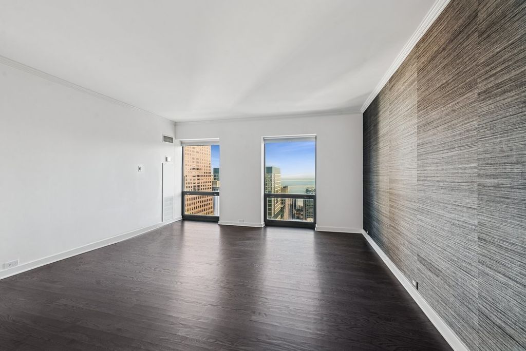 Rare northeast corner residence with sweeping lake and skyline views from every room. Just steps from Michigan Avenue and the Magnificent Mile, this split 2-bedroom, 2-bath home offers light-filled living in an unbeatable location. Hardwood floors run throughout the spacious layout. The kitchen offers generous storage and workspace with granite counters and stainless steel appliances. The primary suite features a walk-in closet and marble bath, while the second bedroom-framed by French doors works beautifully as a guest room, office, or den. Full-service amenity building includes: 24-hour door staff, Indoor pool, Fitness center, Outdoor terrace, Valet dry cleaning Assessments include heat, air conditioning, cable, and internet. Pet-friendly building (2 pets, no weight limit). Ideal as a primary residence or an in-town retreat, moments from the lakefront, dining, shopping, and entertainment. 2 Pets No Weight limit. Live in a Premier Building Steps from World Class Dining, Shopping and Entertainment. Great as a Primary Home or In Town Pied-A-Terre.