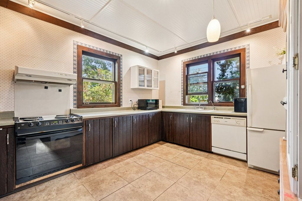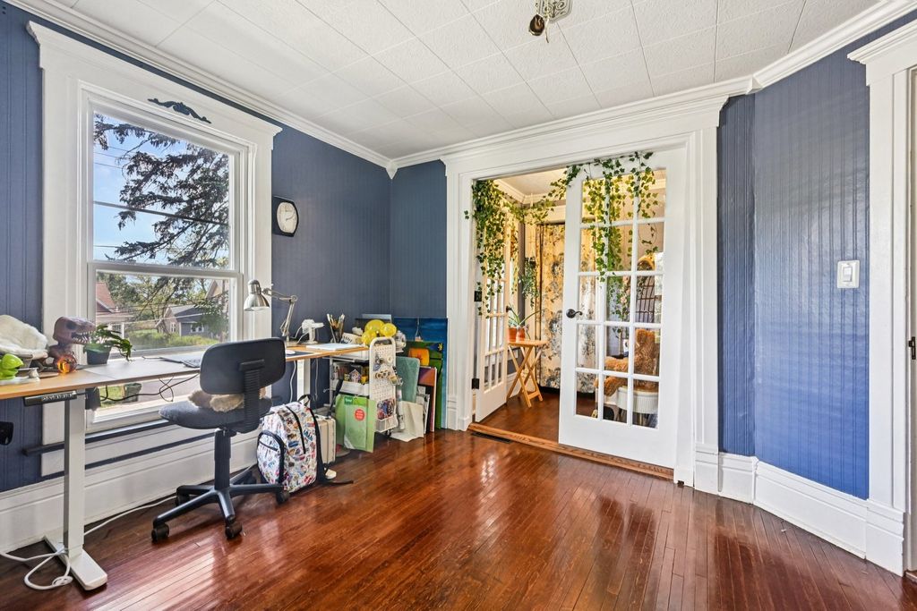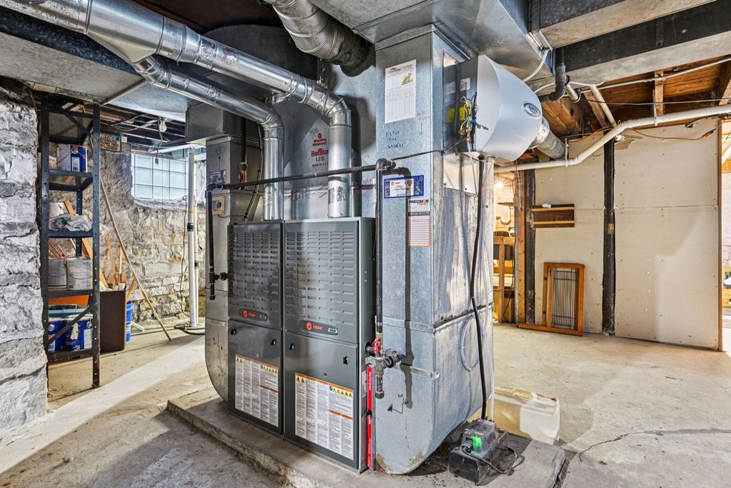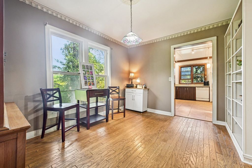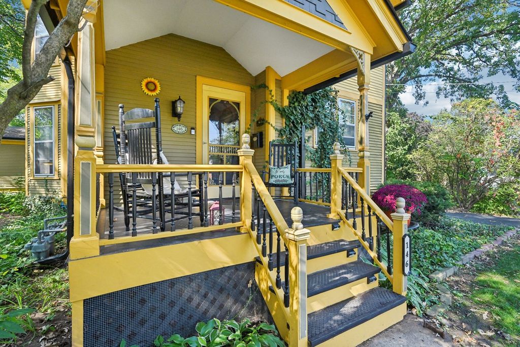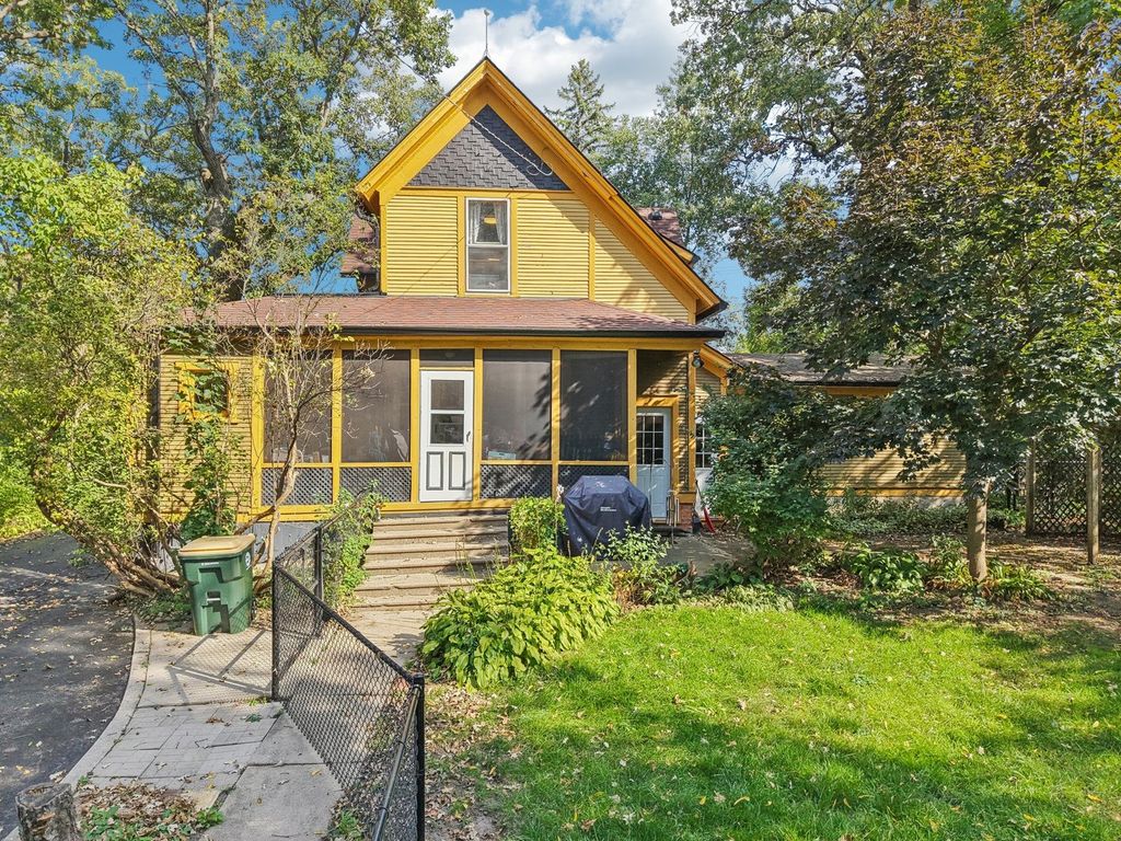 Step back in time with this elegant 1895 Victorian, beautifully blending timeless charm with modern livability. Perfect for multi-generational living or a roommate setup, this home offers two distinct living spaces, each with its own character and privacy. The inviting front porch sets the tone for the warmth within. The main level features a spacious living room, a formal dining area, a generous kitchen, a cozy family room, and a primary suite with private bath. Two additional bedrooms share a second full bath. Enjoy peaceful evenings on the screened back porch overlooking the lush, landscaped yard. The upper level, with its own private entrance, includes a comfortable living room, dining area, and a large kitchen that will delight any home chef, along with two bedrooms and a full bath. The unfinished basement offers laundry and plenty of space for storage or future finishing. Recent updates (2026) include a new furnace, electrical system and main kitchen stove. The expansive .79-acre lot is truly a highlight, surrounded by mature trees and vibrant gardens that create a serene retreat. A charming carriage house on the property offers potential but requires some structural TLC. All this, just blocks from downtown amenities and the Metra station-a rare blend of history, character, and convenience!