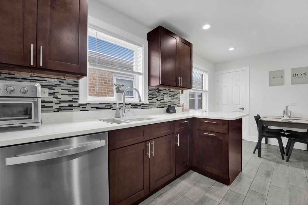 Stunning fully renovated brick home featuring 5 bedrooms and 3 full bathrooms with modern finishes throughout, including new light fixtures. Gorgeous eat-in kitchen with granite countertops, stainless steel appliances, and ample cabinetry. All major systems updated in 2023-roof, electrical, plumbing, furnace, and A/C. Finished basement with additional bedroom and spacious recreation room, plus washer/dryer hookups and storage. Two-car detached garage. Move-in ready with floor plans available in photos. SCHEDULE TODAY!