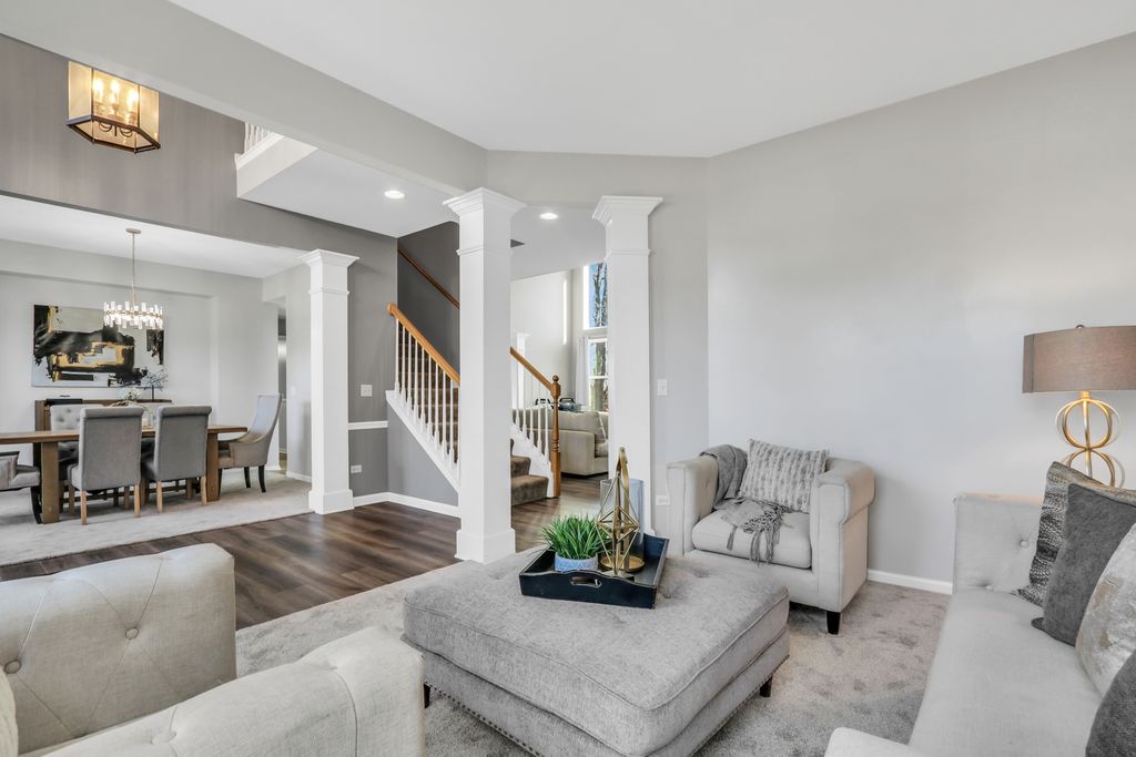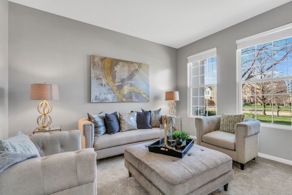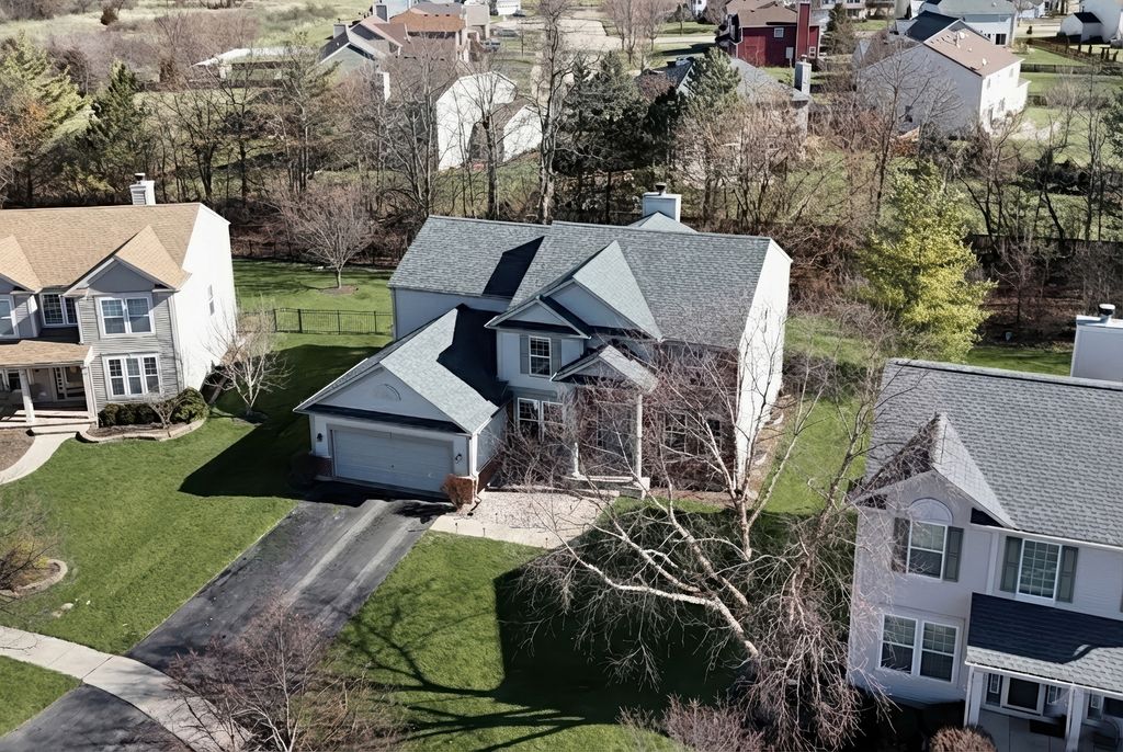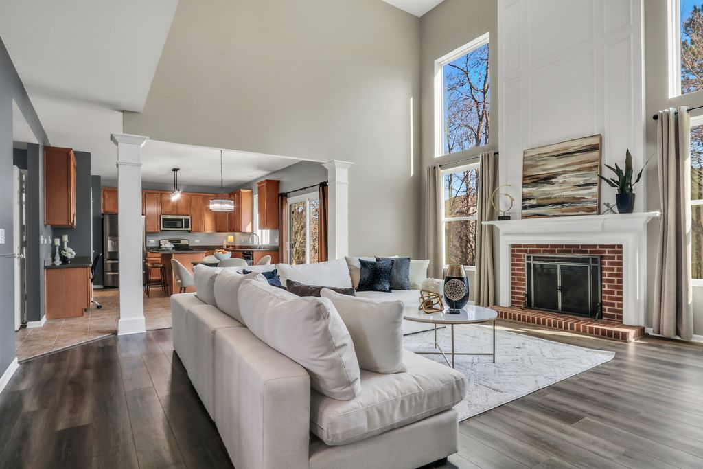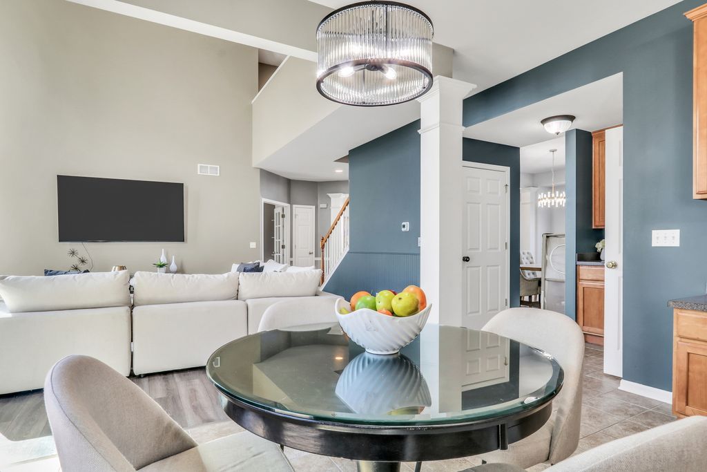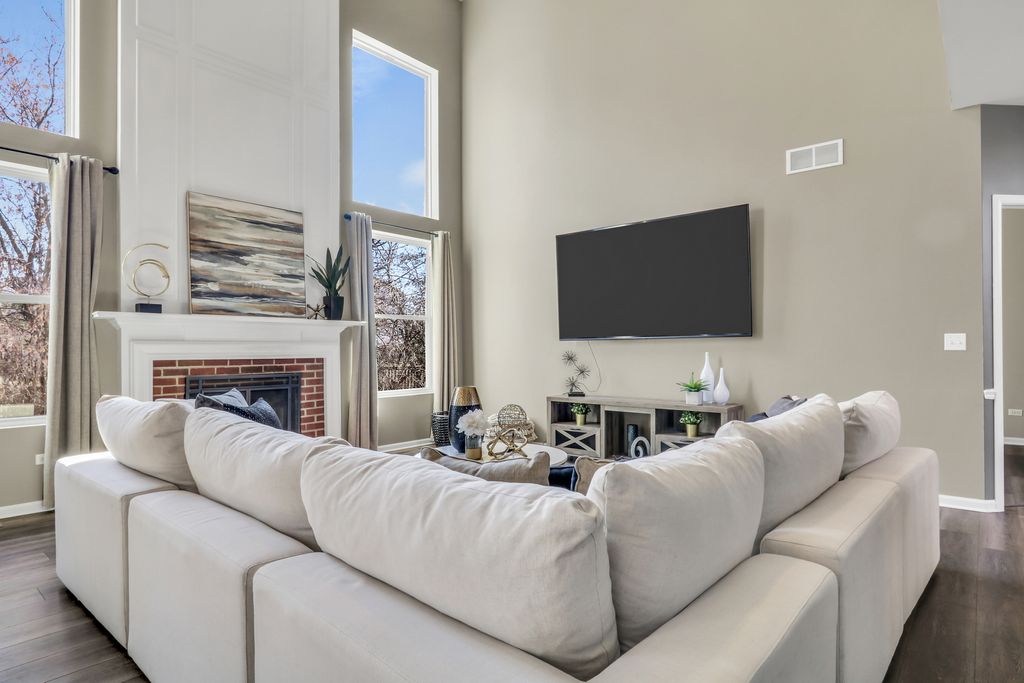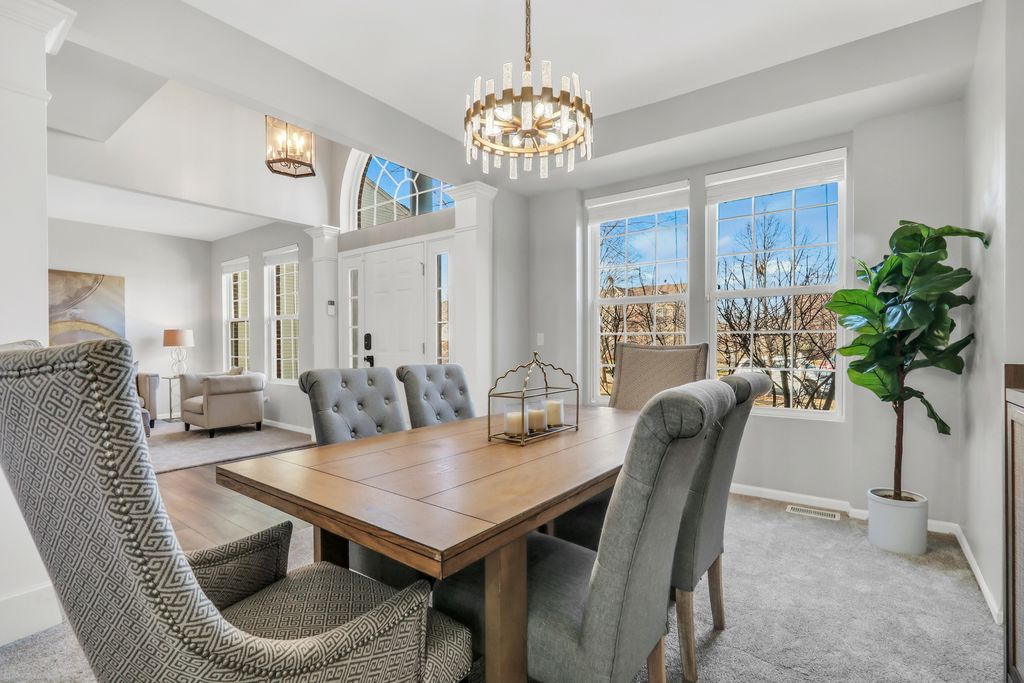 Welcome to this stunning home in the highly sought-after Red Wing View neighborhood - where style, comfort, and functionality come together beautifully. From the moment you arrive, you'll feel the warmth and charm that make this home truly special. Step inside and you're immediately greeted by a sprawling foyer featuring soaring volume ceilings and gorgeous luxury vinyl flooring that flows seamlessly throughout the main level. The open, airy feel sets the tone for the rest of the home. The formal living room is filled with natural light and offers the perfect setting for entertaining guests or enjoying quiet evenings. Just beyond, the adjacent dining room provides an elegant space for hosting dinner parties, holiday gatherings, or special celebrations. Through French doors, you'll find a versatile main-level office - ideal for working from home, creating a craft space, setting up a playroom, or designing the perfect study area. The flexibility of this room allows it to grow with your needs. Head back to the true heart of the home - the kitchen. Designed for both everyday living and entertaining, this space boasts abundant cabinetry, a center island, stainless steel appliances, a comfortable eating area, and a convenient tech desk. Large windows frame stunning backyard views, making meal prep and morning coffee even more enjoyable. Step outside to your brick paver patio complete with a built-in fire pit - the ultimate outdoor entertaining space. Whether you're hosting summer barbecues, cozy fall evenings by the fire, or simply relaxing under the stars, this backyard is designed for making memories. The family room is simply spectacular, featuring dramatic volume ceilings, a cozy fireplace, and an abundance of natural light pouring in through expansive floor-to-ceiling windows. It's the perfect gathering space for family and friends. Convenience continues with a main-level half bath and a functional mudroom/laundry room that helps keep everyday life organized and effortless. Upstairs, retreat to your luxurious Primary Suite featuring luxury vinyl flooring, a spacious walk-in closet, and a beautifully appointed en suite bath complete with double sink vanities, a soaking tub, and a separate shower - your own private sanctuary at the end of the day. Three additional generously sized bedrooms and a full bathroom complete the upper level, offering comfort and space for everyone. The basement provides incredible potential and is ready for your personal touches. With ample storage and room to expand, you can create anything you've always dreamed of. This Red Wing View beauty truly has it all - space, style, warmth, and endless possibilities. Welcome Home.