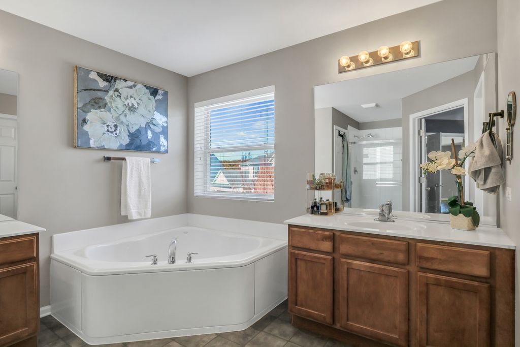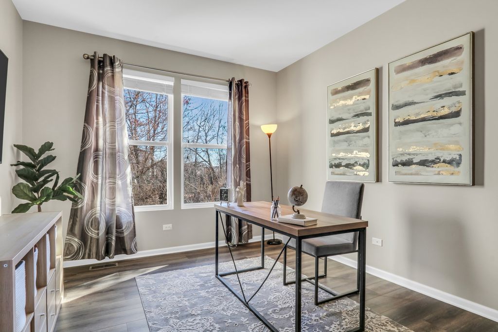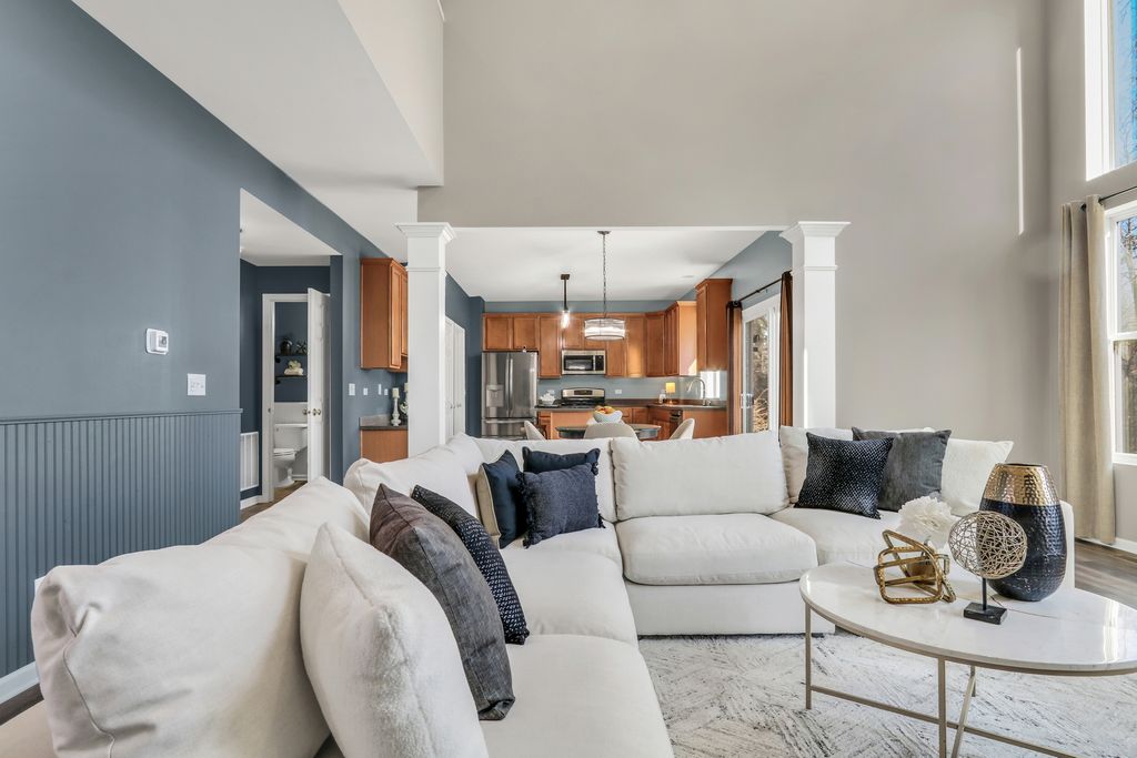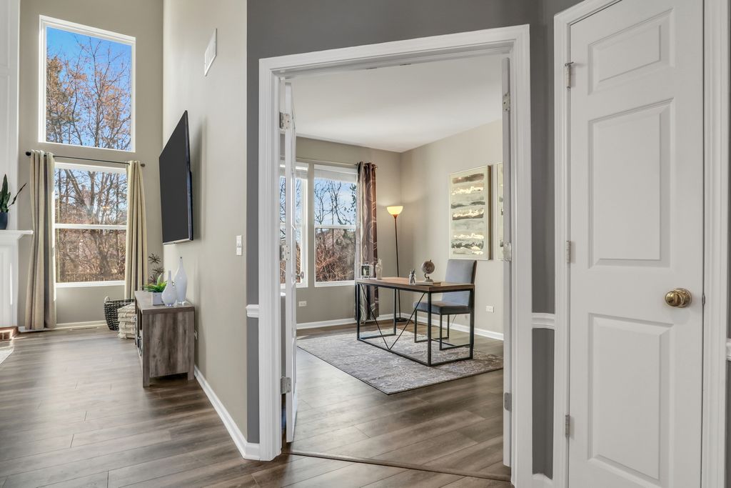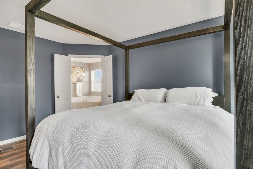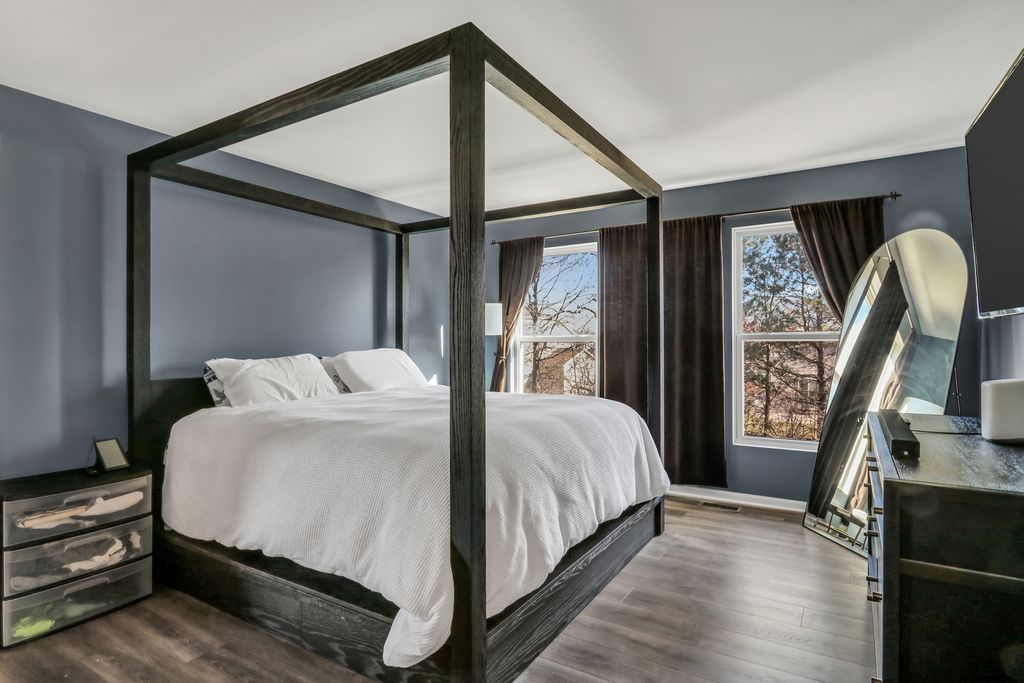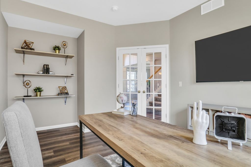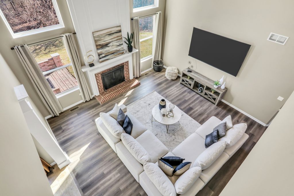 Welcome to this stunning home in the highly sought-after Red Wing View neighborhood - where style, comfort, and functionality come together beautifully. From the moment you arrive, you'll feel the warmth and charm that make this home truly special. Step inside and you're immediately greeted by a sprawling foyer featuring soaring volume ceilings and gorgeous luxury vinyl flooring that flows seamlessly throughout the main level. The open, airy feel sets the tone for the rest of the home. The formal living room is filled with natural light and offers the perfect setting for entertaining guests or enjoying quiet evenings. Just beyond, the adjacent dining room provides an elegant space for hosting dinner parties, holiday gatherings, or special celebrations. Through French doors, you'll find a versatile main-level office - ideal for working from home, creating a craft space, setting up a playroom, or designing the perfect study area. The flexibility of this room allows it to grow with your needs. Head back to the true heart of the home - the kitchen. Designed for both everyday living and entertaining, this space boasts abundant cabinetry, a center island, stainless steel appliances, a comfortable eating area, and a convenient tech desk. Large windows frame stunning backyard views, making meal prep and morning coffee even more enjoyable. Step outside to your brick paver patio complete with a built-in fire pit - the ultimate outdoor entertaining space. Whether you're hosting summer barbecues, cozy fall evenings by the fire, or simply relaxing under the stars, this backyard is designed for making memories. The family room is simply spectacular, featuring dramatic volume ceilings, a cozy fireplace, and an abundance of natural light pouring in through expansive floor-to-ceiling windows. It's the perfect gathering space for family and friends. Convenience continues with a main-level half bath and a functional mudroom/laundry room that helps keep everyday life organized and effortless. Upstairs, retreat to your luxurious Primary Suite featuring luxury vinyl flooring, a spacious walk-in closet, and a beautifully appointed en suite bath complete with double sink vanities, a soaking tub, and a separate shower - your own private sanctuary at the end of the day. Three additional generously sized bedrooms and a full bathroom complete the upper level, offering comfort and space for everyone. The basement provides incredible potential and is ready for your personal touches. With ample storage and room to expand, you can create anything you've always dreamed of. This Red Wing View beauty truly has it all - space, style, warmth, and endless possibilities. Welcome Home.