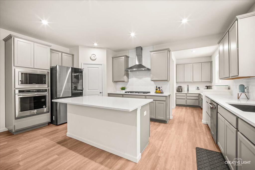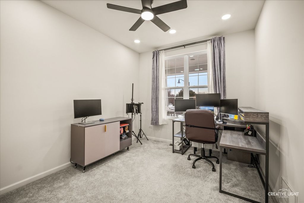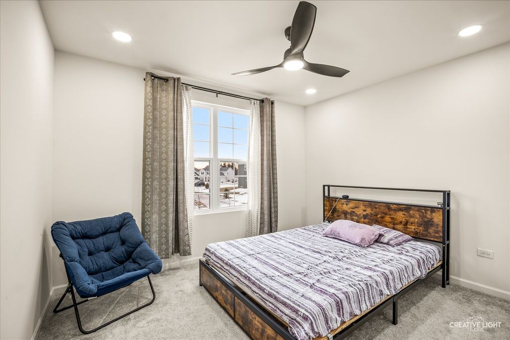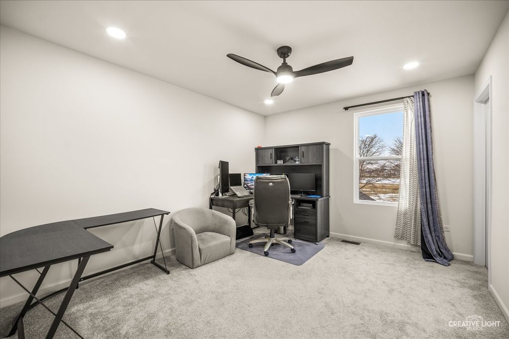 Welcome to this stunning nearly brand-new home, under one year old, offering luxury and modern convenience at every turn. As you enter, a formal dining room greets you to the left, while a private office is to the right. The expansive open-concept living area is bathed in natural light, connecting seamlessly to a gourmet kitchen with quartz countertops, a spacious island, and top-of-the-line KitchenAid appliances, along with a Samsung fridge. A large walk-in pantry and butler's pantry provide extra storage and functionality. The upgraded four-seasons sunroom offers a perfect retreat in all weather. Upstairs, you'll find four spacious bedrooms, most featuring ensuite bathrooms with beautiful tile and quartz finishes. The primary suite boasts a large walk-in shower, double vanity, walk-in closet, and a private toilet area. The loft space adds extra flexibility. The laundry room, conveniently on the second level, includes Samsung appliances, a built-in sink, and a linen closet. The unfinished basement offers the potential for expansion. Outside, the home sits on a quarter-acre lot with a three-car garage. As a smart home, it's fully integrated with Google throughout. The home comes with a 1-year builder warranty, 10-year structural warranty, and 3-year appliance warranty. Home is equipped with smart ecosystem (outdoor security cameras, smart entry system, smart lights and smart fans, smart thermostat!