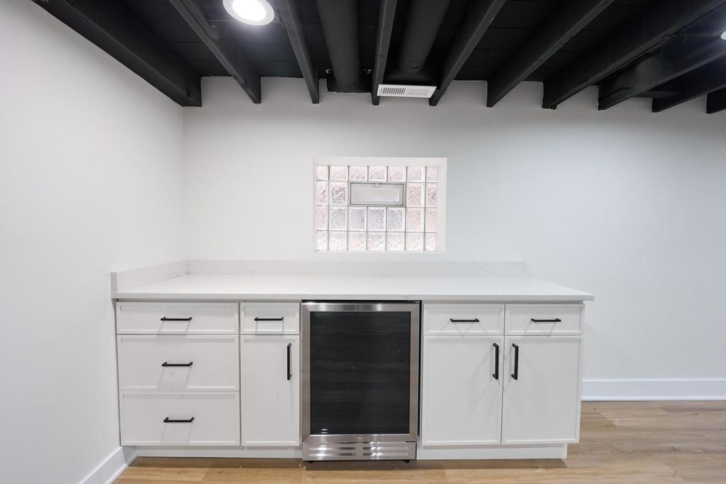 Fully renovated, move-in ready brick bungalow offering 4 bedrooms and 3 full bathrooms, completed with permits and warranties throughout. The bright, open main level features luxury vinyl plank flooring, recessed lighting, and a designer kitchen with quartz countertops, two-tone cabinetry, statement backsplash, and brand-new stainless steel appliances. The main level includes two bedrooms and two full bathrooms, highlighted by a primary suite with private en-suite bath plus a beautifully finished hall bath. A custom mudroom with built-in bench and storage adds everyday functionality and convenience. The finished lower level provides exceptional additional living space, featuring a large recreation room, wet bar with beverage fridge, two additional bedrooms, a third full bathroom, and laundry and mechanical area ideal for guests, extended family, or entertaining. Major upgrades include new roof, windows, gutters, fascia, soffits, HVAC system, furnace, central AC, water heater, upgraded water service, updated plumbing and electrical, and a new drain tile and flood control system, all completed with permits. Detached two car garage with new garage door. Approximately 2,243 square feet of finished living space across two levels. A rare opportunity to own a truly turnkey home in Berwyn with no deferred maintenance.