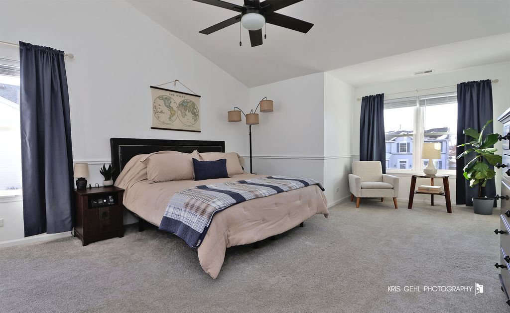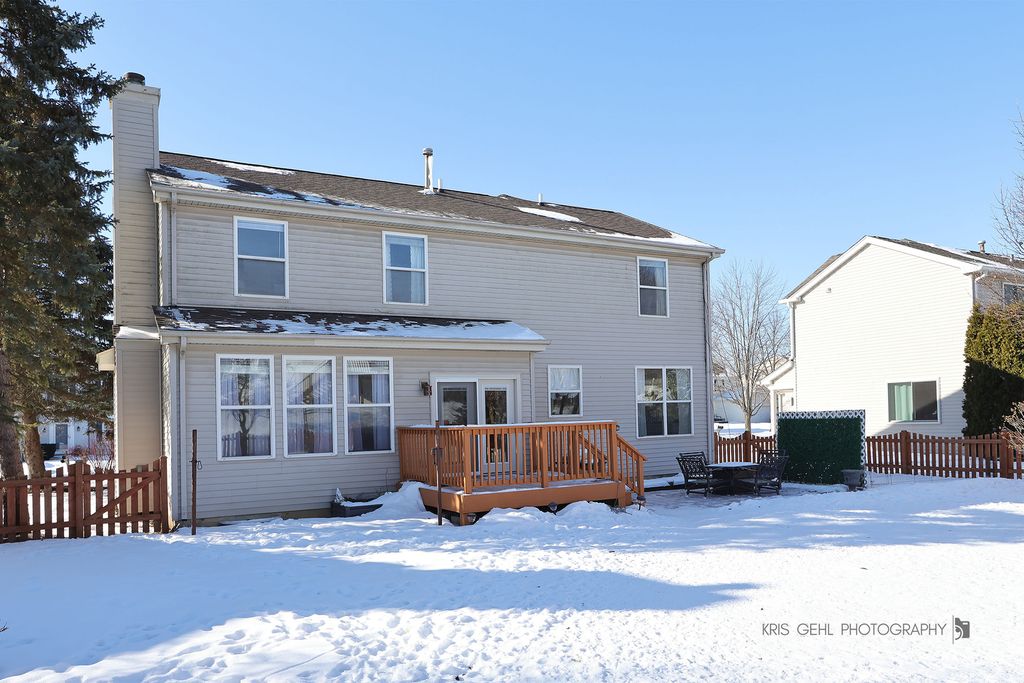 Beautifully maintained, immaculate 2-story home featuring architectural details rarely found at this price point. Gleaming hardwood floors span the entire first floor, complementing a fantastic flowing floor plan ideal for entertaining or everyday living. Custom millwork and updated lighting throughout add a refined touch. The updated kitchen offers solid surface countertops, a pantry, and dining area with direct access to the fenced backyard-perfect for pets or playtime. Enjoy multiple outdoor living options with a large deck and patio. The entertainment-sized family room is sure to impress with a cozy fireplace and ample space for even the largest TV. The primary en-suite retreat features a vaulted ceiling, sitting area, walk-in closet, and private bath with soaker tub, separate shower, and double bowl vanity. The 2nd floor also includes three additional generously sized bedrooms, a full hall bath, and convenient second-floor laundry (washer and dryer included). The full unfinished basement provides abundant storage or can be finished to suit your needs and is already stubbed for an additional bath. Some of the Recent Updates include: Roof (2022), Furnace (2021), Sump Pump (2022), Fence (2024), Water Heater (2024), Basement Insulation (2026), Front & Back Exterior Doors (2024) and New Garbage Disposal (2026). Located in desirable Windmill Creek-walk to town, commuter train, parks, and enjoy Tim Osmond Sports Complex. Don't miss this amazing opportunity to make this your new home sweet home!