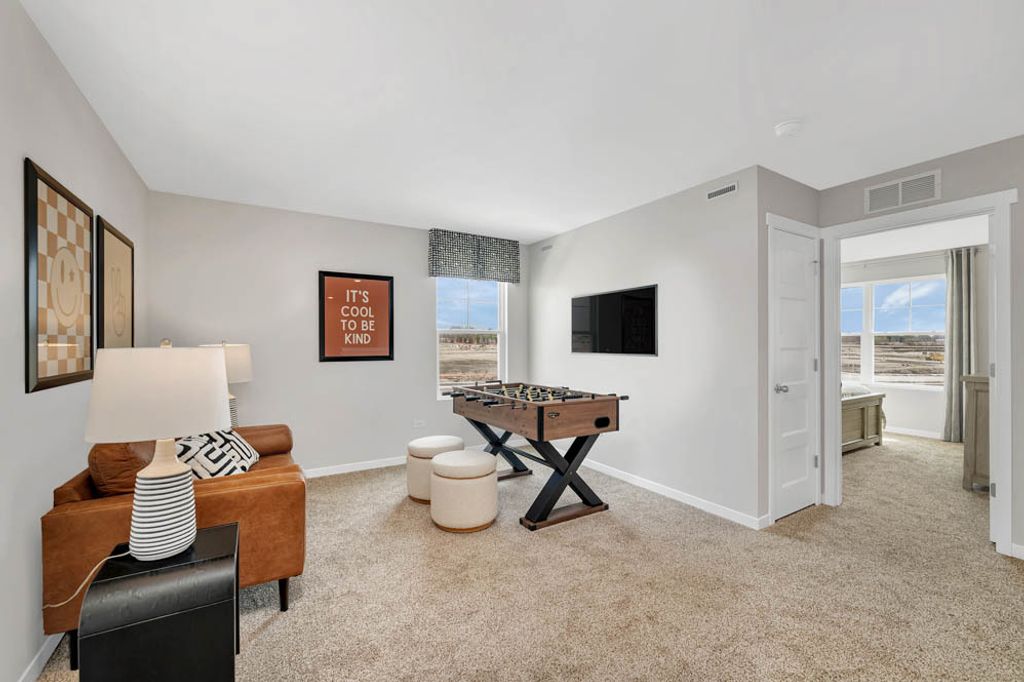 Discover yourself at 1242 Tiger Lily Drive Bartlett, Illinois, a beautiful new home in our The Grasslands community. This home is ready for a quick move-in! This large, scenic homesite includes a fully sodded yard with no neighbors behind. Introducing the Coventry floor plan features a two-story, open concept home provides modern functionality with 4 large bedrooms, 2.5 baths, plus a loft space for an added second floor living area with the option to include a guest room and full bath on the main level. The Coventry plan features a staircase situated away from the foyer for convenience and privacy, as well as a wonderful flex available with optional doors for added privacy. The kitchen is well appointed with beautiful cabinetry, a large butler's pantry, quartz countertops, stainless steel appliances, and a built-in island with wonderful seating space. Four bedrooms upstairs include a deluxe primary bedroom with walk-in closet and en suite bathroom with dual sink vanity and private water closet. Laundry won't be a chore with its dedicated space conveniently located near all bedrooms. Three additional bedrooms and a full secondary bathroom, and the loft space complete the upper level. All D.R. Horton Chicago homes include our America's Smart Home Technology, featuring a smart video doorbell, smart Honeywell thermostat, smart door lock, Deako smart light switches and more. *Photos are for representational purposes only, finishes may vary per home.