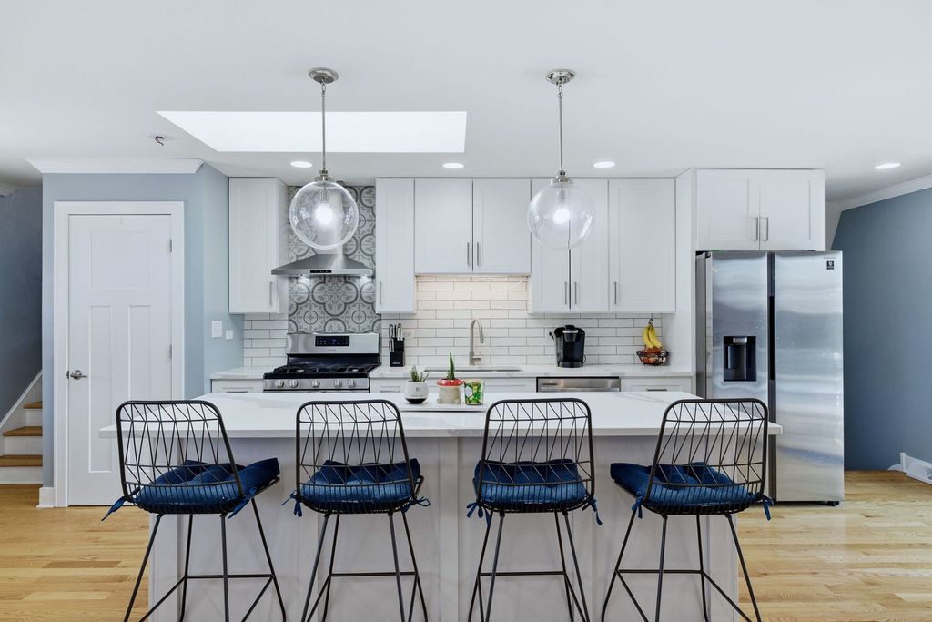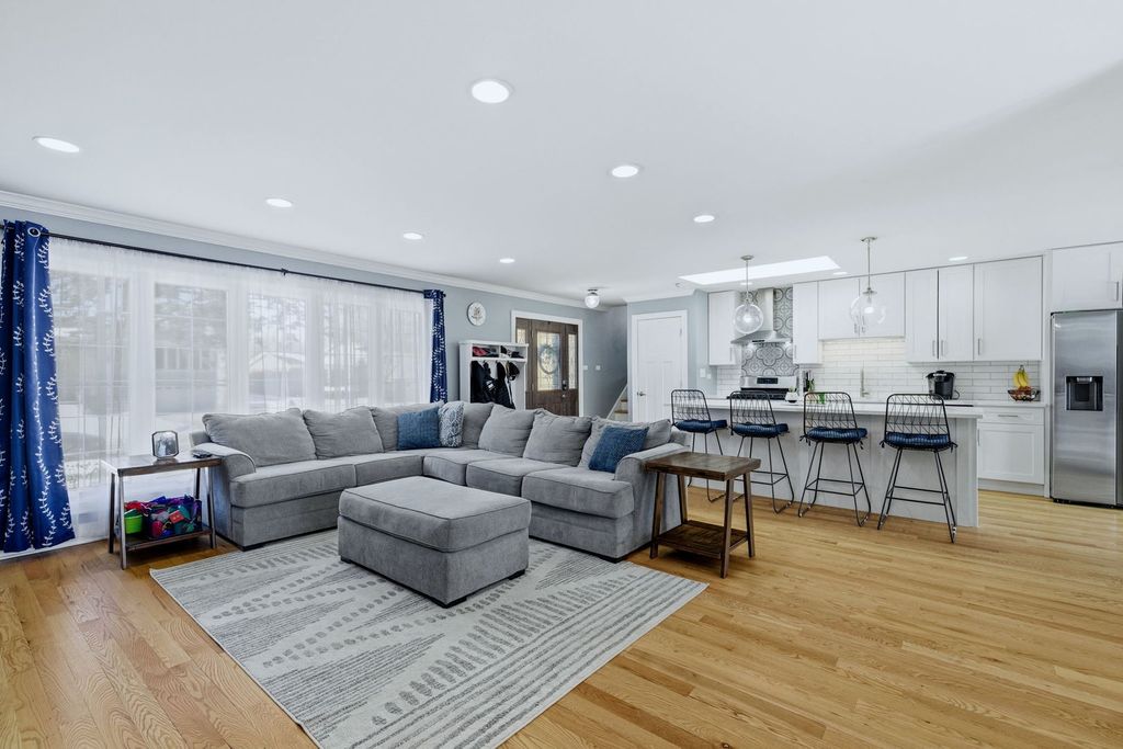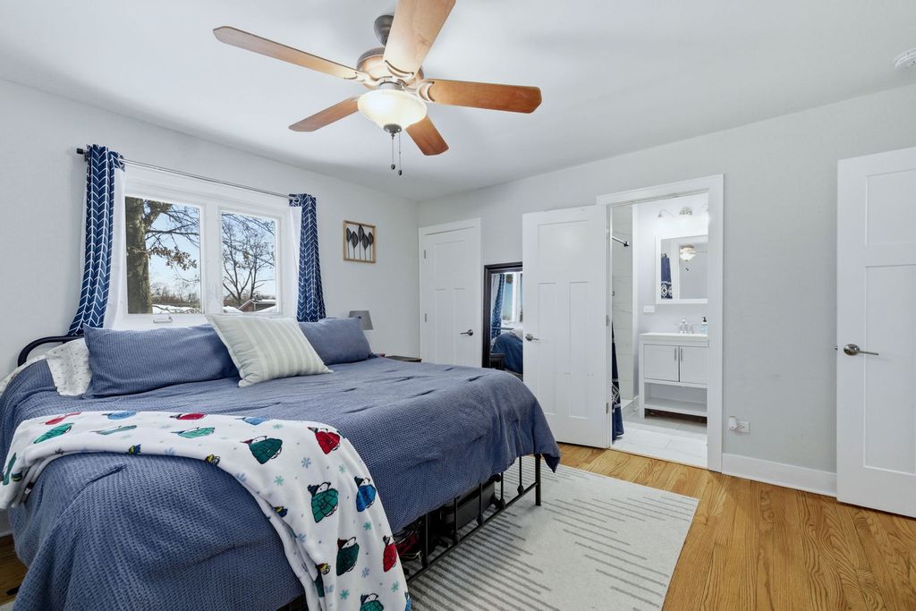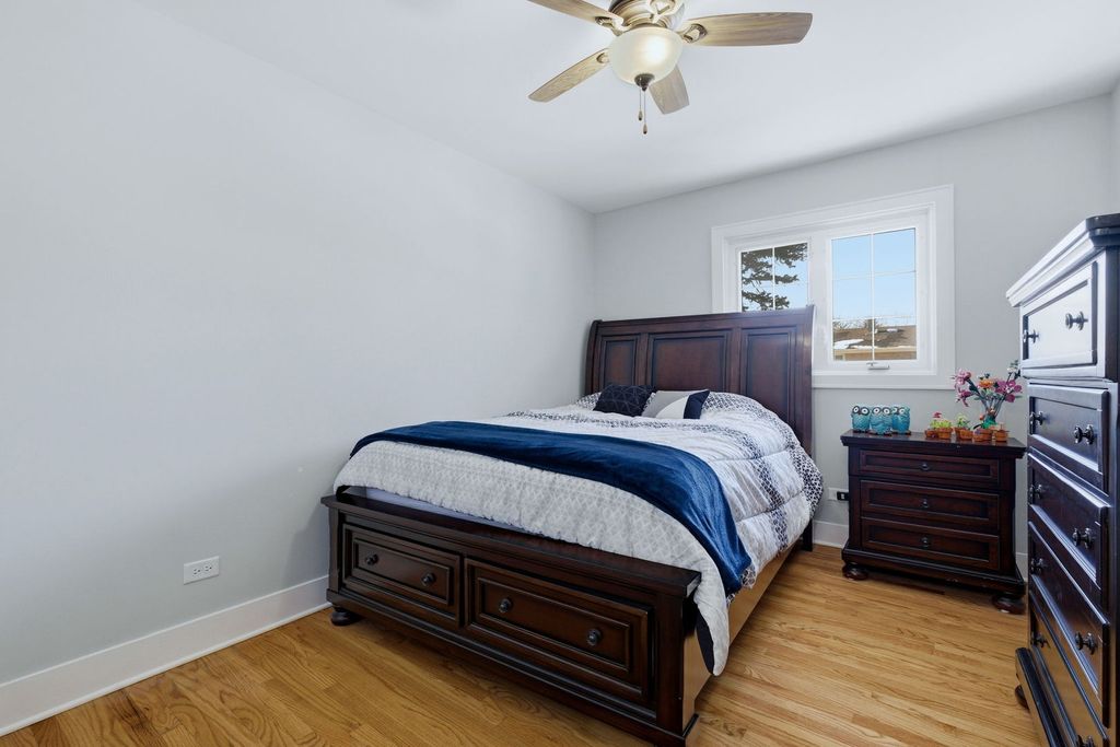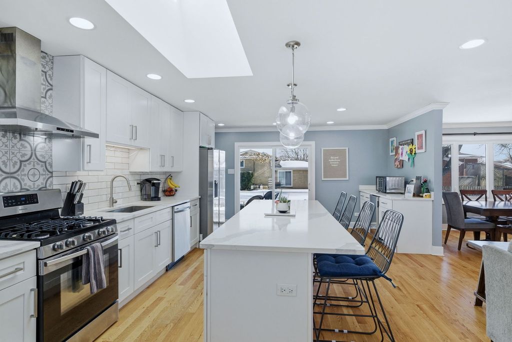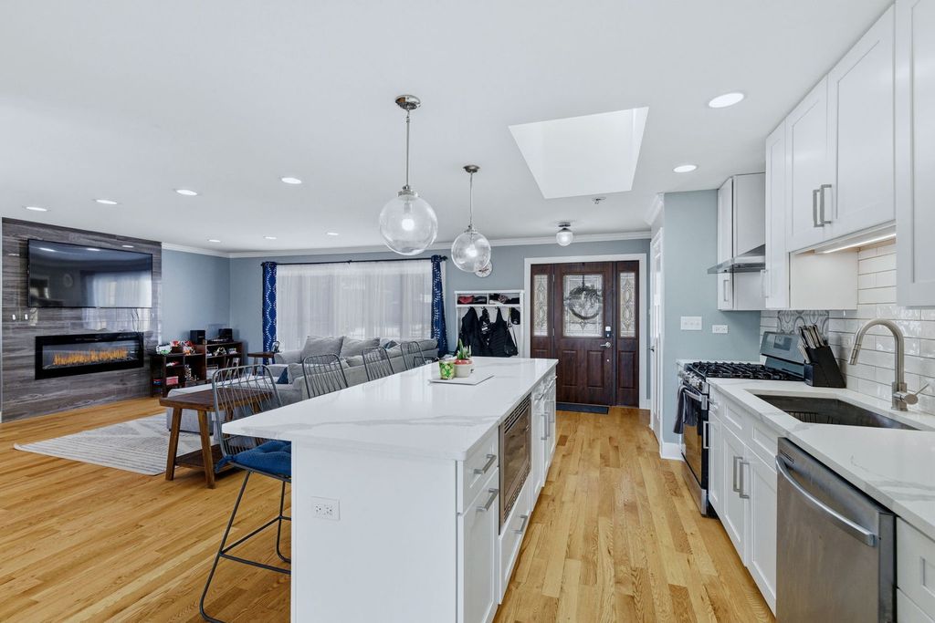 Fully remodeled split-level home (within Tinley Park schools K-12 through grade!!) with a modern open-concept design. Beautiful, sleek kitchen features white shaker cabinets, HUGE island with breakfast bar seating featuring sleek quartz countertops. Newer stainless appliances, skylight, pantry, subway tile backsplash, and wine bar with beverage cooler. Beautiful 2 panel white doors, 5 inch baseboards and wide door moldings. The south facing, sun drenched kitchen is completely open facing to the family room with recessed lighting and electric fireplace. Enjoy carpet free living with hardwood floors throughout main and second level. All bathrooms are updated, and a spacious primary bedroom with walk-in closet and attached full bathroom. All windows are newer 2021. You'll love spending time outdoors hosting friends and family in the large, fully-fenced backyard with patio and firepit. All of this within the top rated Andrew High School district!!