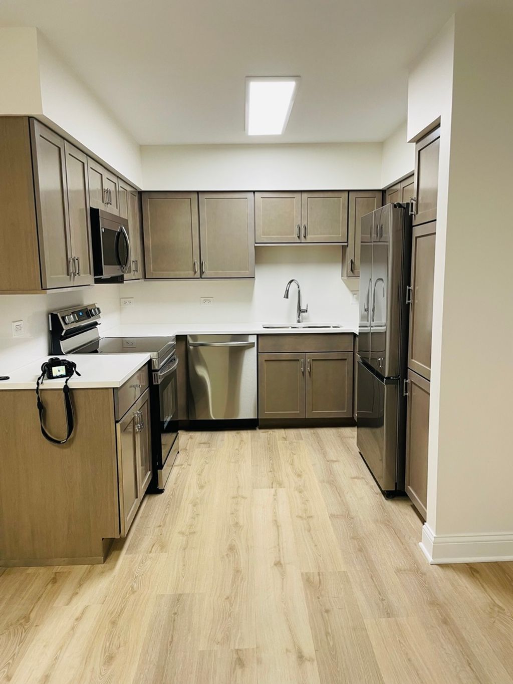 This expansive, recently renovated top-floor corner residence offers three bedrooms and one and a half baths, along with a private one-car garage and an additional outdoor parking space, all in the heart of downtown Glenview. It is the largest home in an exclusive seven-unit boutique building and one of the few units to feature an in-unit washer and dryer. The thoughtfully redesigned interior includes a generous living room with flexible layout options, a separate dining room, three well-proportioned bedrooms, and a beautifully finished kitchen with quartz countertops, full slab backsplash, stainless steel appliances, full-height pantry, under-cabinet lighting, and abundant soft-close cabinetry. Additional highlights include recessed lighting throughout, ample in-unit storage, an updated 100-amp electrical panel, polished chrome fixtures and hardware, shaker-style doors with refined trim and casing, and premium 9-inch plank flooring installed over sleepers with high-end underlayment for enhanced durability and privacy. The unit benefits from reasonable taxes and HOA dues, which include heat, plus a private storage unit. The self-managed association is well run with strong reserves. A truly exceptional home offering quality, space, and an unbeatable location.
