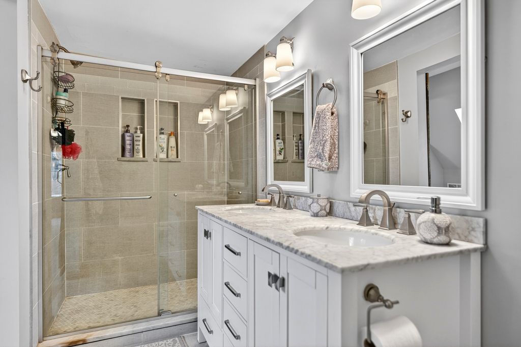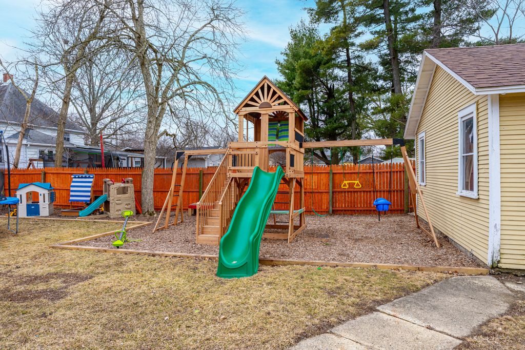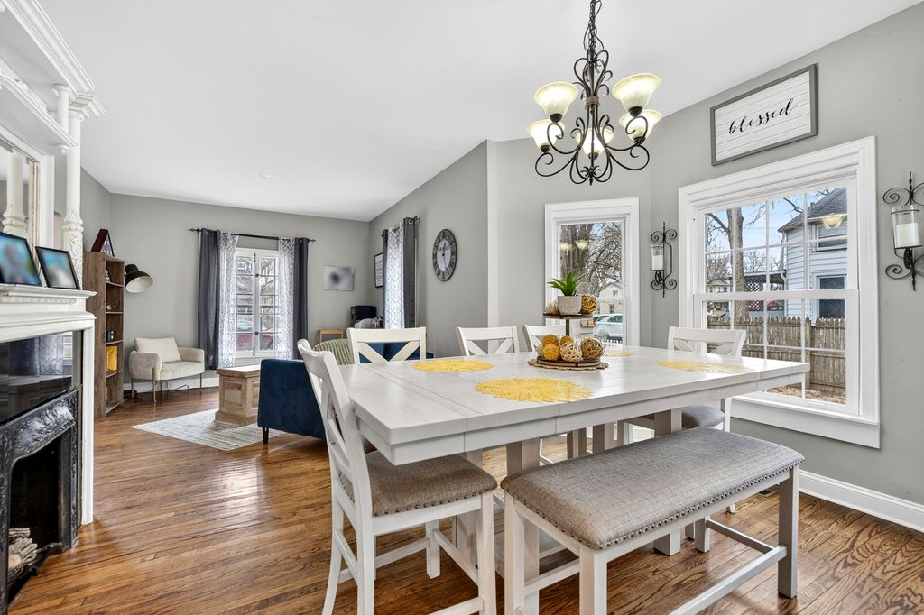 This darling piece of Oswego architectural history has been lovingly restored with exceptional care and timeless style. Ideally located just blocks from everything downtown Oswego has to offer, this home is a true community staple. Originally built in 1900, the residence now features a completely renovated interior paired with a spacious family room addition, blending historic charm with modern living. The open and airy main level showcases rich hardwood floors, formal living and dining rooms, and a beautifully updated kitchen with stainless steel appliances, granite countertops, and a new dishwasher (2025). A main-level bedroom with a built-in Murphy bed provides flexible space for guests, a home office, or everyday convenience. Upstairs, the newly added primary suite offers a private retreat complete with a spa-inspired en-suite bath featuring heated floors for year-round comfort. Major updates include a new roof and siding (2024) and a new hot water heater (2024). An unfinished basement provides excellent storage or future finishing potential. Outside, enjoy an updated backyard oasis perfect for hosting, featuring an enormous yard ideal for entertaining, along with a detached two-car garage and a charming she-shed for hobbies or relaxation. This one-of-a-kind home delivers historic character, thoughtful updates, and an unbeatable location in the heart of Oswego.