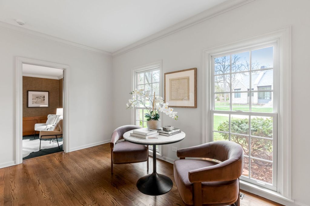 First time on the market since 1980, this elegant French Normandy-style residence reflects over four decades of thoughtful stewardship by one family. Quietly set along a tree-studded lane, the nearly one-acre property opens to a serene pond and a sense of privacy rarely found so close to downtown Lake Forest. Graciously appointed interiors spanning over 5,000 square feet showcase crown molding, tall ceilings, finely detailed millwork, and a true sense of arrival from the moment one enters the foyer. Timeless in character yet highly livable for today, the well-considered floor plan allows for effortless flow between the formal living and dining rooms, the family room, and an exceptionally large kitchen anchored by a center island and generous breakfast room. A screened porch overlooks the backyard and pond, filling the home with natural light and tranquil views throughout the seasons. A private, wood-paneled library appointed with built-ins, grasscloth walls, and a fireplace offers an ideal work-from-home retreat behind French doors. The first floor also includes a guest bedroom with a full bath-perfect for in-laws or guests, and an attached two-car garage. Upstairs, the home continues to impress with three bedrooms, an office, a dedicated laundry room, and a retreat-like primary suite with ample closet space and a spa-inspired bath appointed with dual showers, including a luxurious steam shower. The partially finished basement offers a recreation area and abundant storage space. It is rare to find a property that combines this level of privacy, scale, and architectural integrity just minutes from downtown Lake Forest, with its charming shops, acclaimed restaurants, Metra station, and easy access to the beach and lakefront.