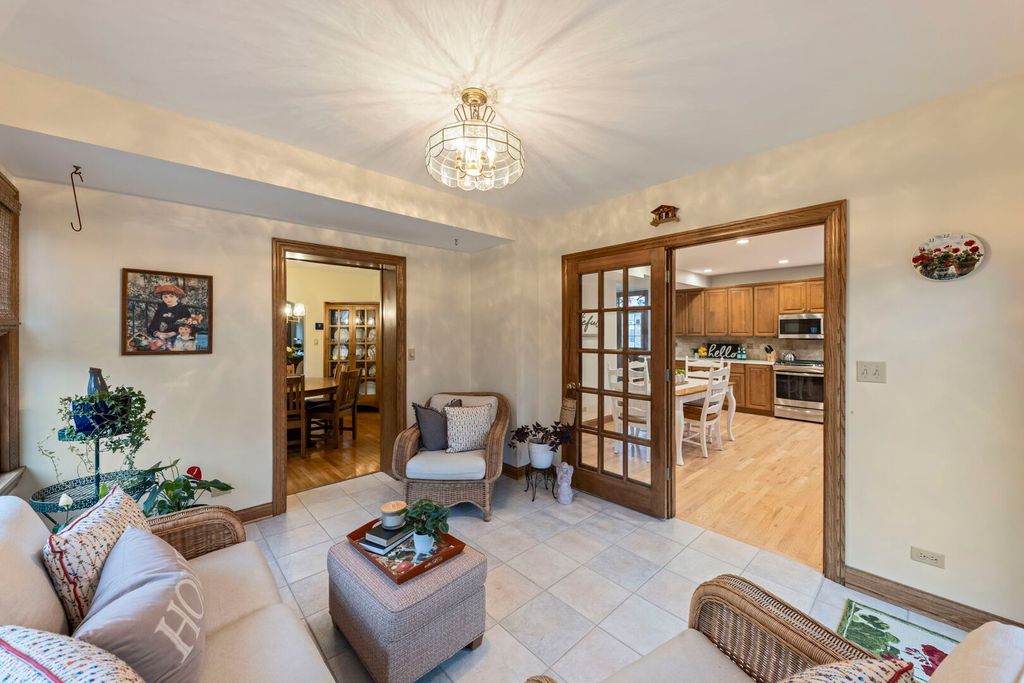 Super Cute and Expanded New England Cape Cod sits proudly on a professionally landscaped lot! The location does note get any better being 1 block away from both highly acclaimed Whittier Elementary & Edison Middle School! Easy accessibility to train, downtown Wheaton, restaurants, French Market & all shopping with underpass to cross Roosevelt Rd. The sellers have lovingly maintained their home for the past 43 years and are the 3rd owners. They have beautifully blended timeless character with thoughtful modern updates throughout. Hardwood floors through most of main level and 2nd floor. The welcoming Living Room creates a comfortable space for relaxing or entertaining in front of the cozy fireplace. The Living Room opens to the separate Dining Room that easily accomodates groups for the holidays! Serving is easy with the Butler's pantry connecting the Dining Room to the Kitchen. The remodeled kitchen features timeless maple cabinets, all newer appliances, quartz counters, newer backsplash, new paint and freshly refinished hardwood floors. The Kitchen opens into the 4-season Sunroom and has access to patio & backyard. Work from home is easy in your 1st floor office which can easily be converted to a bedroom. Four generous bedrooms on 2nd level. The Primary Bedroom ensuite offers a custom designed walk-in closet. The attached Primary Bath has been updated with newer vanity, medicine cabinet, lighting, faucet and countertop with double sinks. The Sitting Room attached to the 2nd Bedroom makes a great play area, 2nd office or workout space. The Hall Bath has been updated with newer sink, faucet, counter and medicine cabinet.. Fall in love with the finished basement with living area, dining, kitchenette, 5th Bedroom, full bath, laundry and separate entrance to the outside! Newer Anderson windows, HVAC (2020), Roof , gutters, downspouts, soffit, fascia & siding (2021), new driveway (2025). Two new hot water heaters (2022). All brick exterior.The landscaping is exquisite with many flowering shrubs, trees, & perennials.Fenced backyard with 10,000 square foot lot. This house is Clean, Clean, Clean & shows like a model home! District 200 Schools.. Whittier, Edison and Wheaton Warrenville South. This home truly has it all!