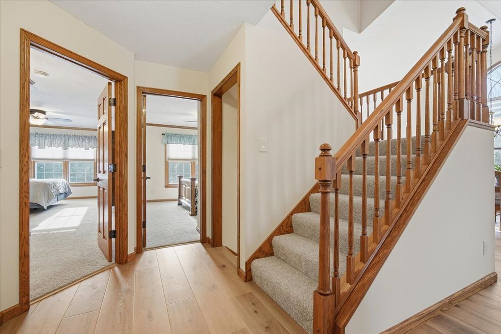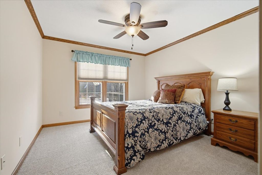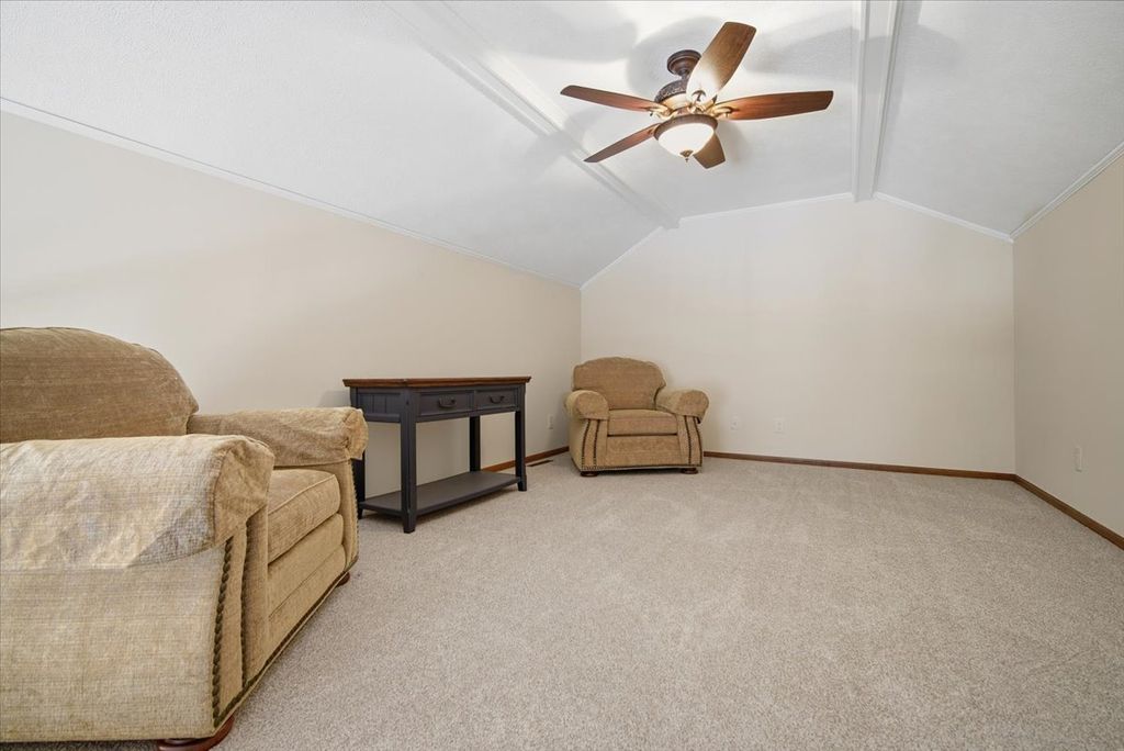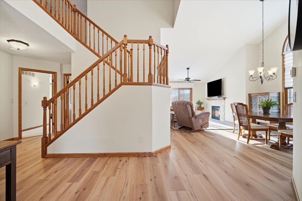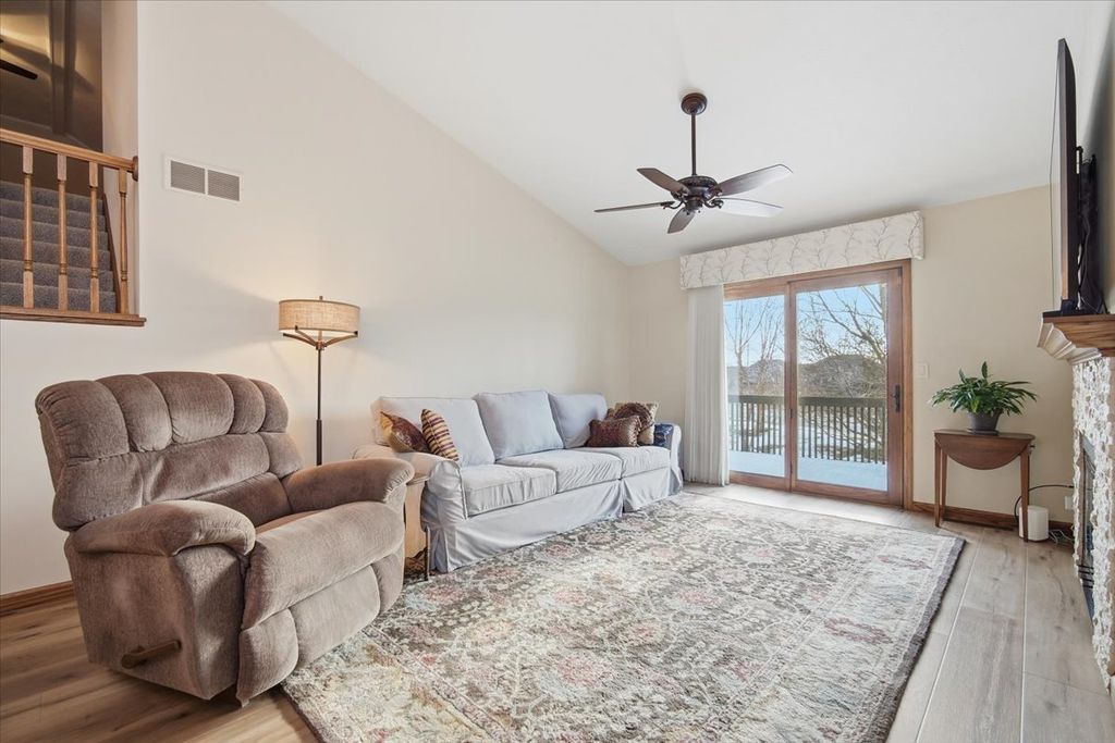 Fantastically kept and updated Hawthorne Villaminium. Open floor plan with high, vaulted main level ceiling. This main level primary suite home features beautiful top-quality Coretec LVP flooring throughout the main level and top-quality Karastan carpeting with upgraded padding in the loft and basement. All flooring was just installed in 2024. The primary suite's bathroom has a fantastic "Safe Step" whirlpool tub, installed in '24, and a separate shower. There is a second bedroom and a second full bathroom on the main level as well. The upstairs loft is the perfect place to unwind and enjoy your favorite book, or maybe make this space your record room or craft nook! The full basement has so many wonderful spaces, including a room that could be a guest area (egress window is just outside it in the family room area), a family room with a mounted TV that stays (all TVs in the home with their mounts will stay), and even a wet bar with a staying mini fridge! Exterior features and updates include a new roof in 2021, a freshly painted back deck in 2025, and all new siding in 2025! The air conditioner was new in 2021, and the large capacity 75-gallon water heater was new in 2025. A new garage door & "quiet design" belt driven garage door opener were installed in 2025. Living here also grants you access to the private lake and tennis courts in Hawthorne. These fantastic villaminiums don't come up very often, don't miss your chance at this one!