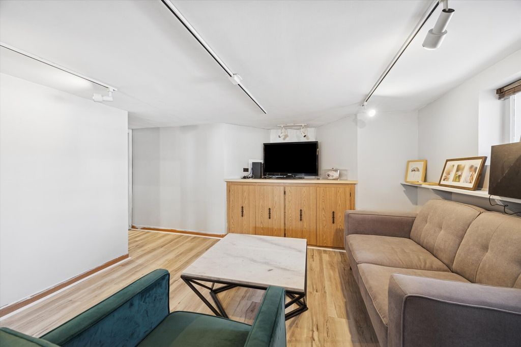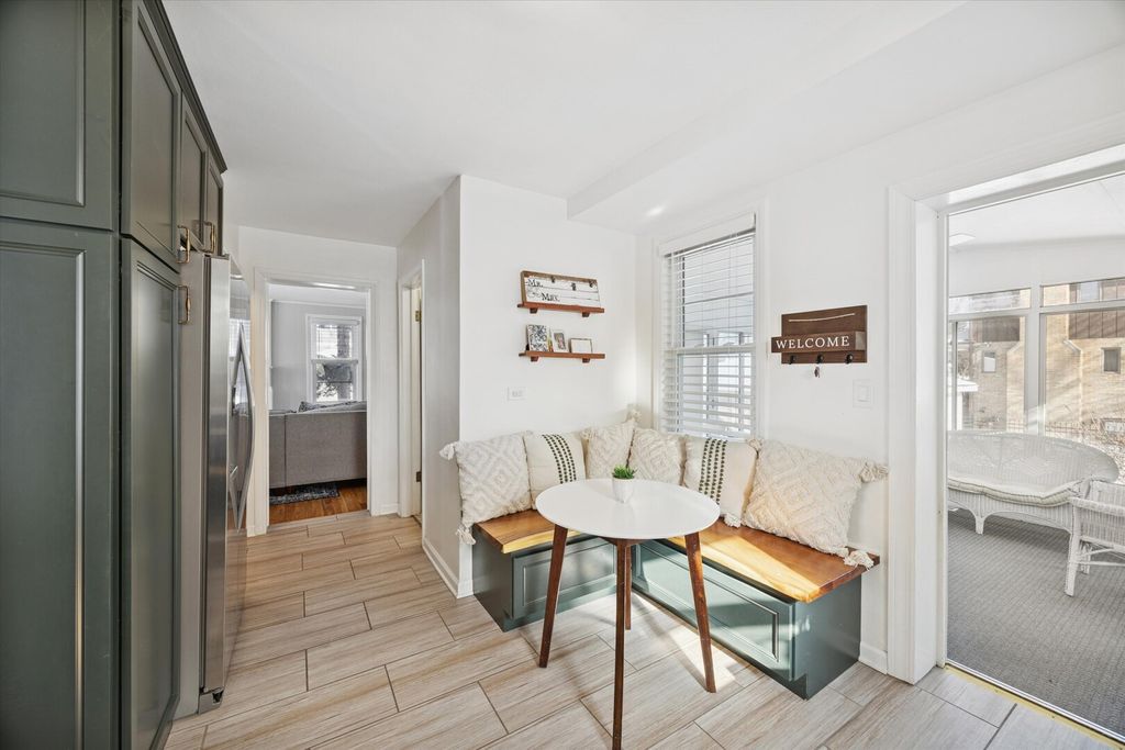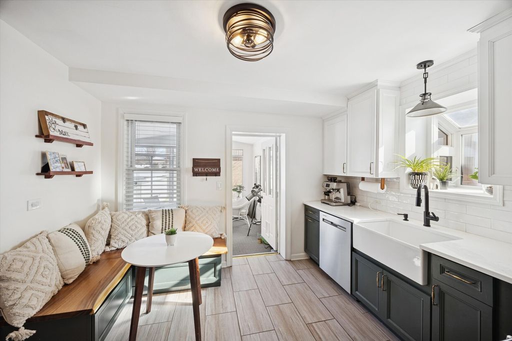 Welcome to this charming and well-maintained brick Georgian, ideally located on a quiet, tree-lined street in Brookfield's Hollywood section. Set on a rare 60-foot-wide corner lot within the highly regarded Riverside-Brookfield High School District, this home offers close to 1,700 square feet of total living space along with numerous recent updates that provide both comfort and peace of mind. Step into a bright and inviting living room featuring a classic wood-burning fireplace and beautiful hardwood floors. The adjacent dining room is perfect for everyday living and entertaining, with a charming French door that leads to the newly renovated eat-in kitchen. Just off the kitchen, a cozy sunroom offers a wonderful place to relax and has been thoughtfully improved with new structural components beneath. An updated first-floor powder room, bay windows in the front rooms, and gorgeous hardwood floors complete this level. Upstairs, you'll find two spacious bedrooms, each featuring hardwood floors and coffered ceilings with exposed beams. The primary bedroom includes a private bathroom with new fixtures and two large closets. The 2nd full bathroom has been completely renovated and now features a modern walk-in shower. The finished basement adds flexible living space with a recreation room, laundry area, and a bonus room currently used as an office-ideal as a potential third bedroom or guest space. Recent improvements include new basement flooring. The exterior has been extensively enhanced with fresh landscaping, a new Trex deck, and a new steel fence, creating great spaces for outdoor enjoyment. The home also features a newer roof, large front and back yards, a concrete patio, and a detached 2.5-car garage with a side driveway. All of this is within walking distance to the Metra train station, highly rated elementary and high schools, the Brookfield Zoo and forest preserves. A wonderful opportunity in an exceptional location!